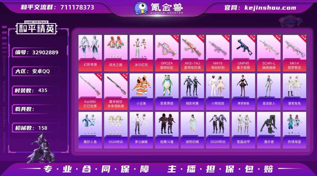 【特价出售】钱包无法注销安卓Q-3粉装11特效枪10热门117套装158枪皮 50007热力值 5印记 历史超级王牌11星 【3粉装】 炫光之旅 幻彩电音 冰川红玫 【11特效枪】 SCAR-L-锦绣绵绵 (5级) M416-电玩时刻 (5级) AKS-74U-星穹咏叹调 (7级) Kar98K-巳巳如意 (4级) UMP45-量子极限 (5级) Mk14-甜梦熊击 (5级) 莫辛纳甘-未来领航者 (4级) GROZA-旋转彩虹 (7级) AA12-G-萌骑幻想 (1级) PKM-萌骑夺宝 (1级) ACE32-萌骑漫游 (4级) 【10热门】 小丑鱼 龟仙人 鹰眼刺客 纯白誓言 粉红小猪 漫步者 破蛋小黄鸡 极速红龙 军刀雅典娜 英勇保护者