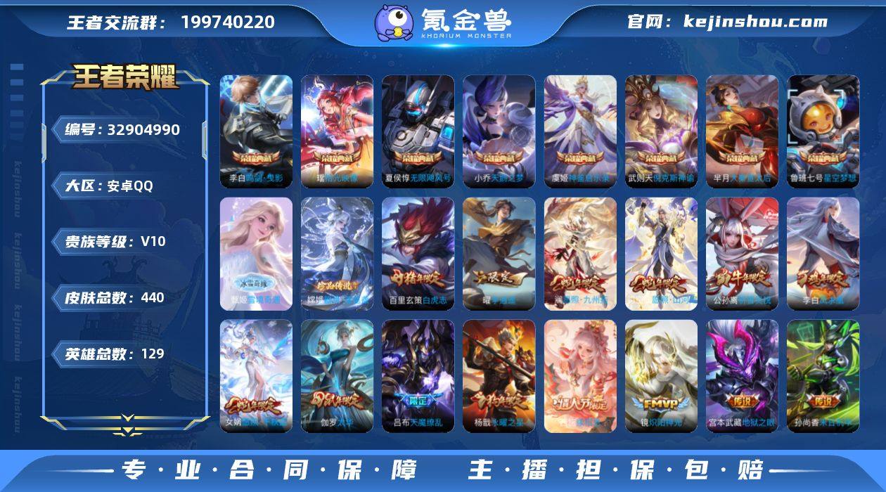 V10,9个荣耀典藏,1个无双,1个珍品传说,8个星元皮,11个个性按键,400个皮肤共享。