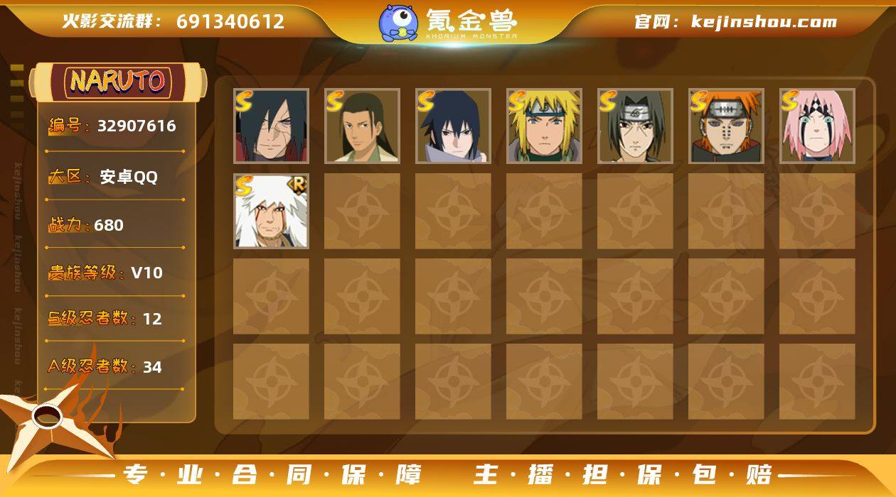 [18163334]V10 12S忍 34A忍 15通灵 680.4W战力 可二次 可修改实名 【S级忍者】宇智波斑「秽土转生·解」,千手柱间·木叶创立,宇智波佐助「永恒万花筒」,春野樱 「忍界大战」,自来也 「舞之豪杰」,旗木卡卡西「须佐能乎」,自来也 「传说中的三忍」,漩涡鸣人 「暴怒·第六尾」,漩涡鸣人·宇智波佐助,宇智波鼬 「须佐能乎」,佩恩「天道」,波风水门