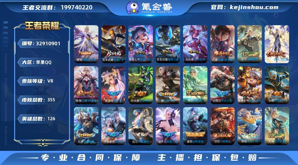 【编号90167,可秒换绑】【极品连体号,王者带有虞姬荣耀典藏,宫本珍品传说,云缨神骥·越干峰,司空震愿照·山河定夏洛特浮生妄,干将莫邪画中仙,花木兰燃星之曲,孙悟空齐天大圣,李信山海·炽霜斩,吕布怒海麟威,孙策孙尚香的末日机甲,耀的FMVP等等,和平有火箭少女等七款粉装,三把七级升级枪两把五级升级枪,还有一辆阿斯顿马丁,三角州带麦晓雯红皮跟刀皮龙牙等等!】 ,苹果Q-V8-最强王者段位-126英雄-355皮肤-1典藏皮肤-1珍品传说-16传说-95史诗 【英雄全皮】:孙权全皮,敖隐全皮,空空儿全皮 【荣耀典藏】:虞姬神鉴启示录 【珍品传说】:宫本武藏黑崎一护 【传说皮肤】:云缨神骥越千峰,后羿神树通天,司空震愿照山河定,桑启鸣野蒿,夏洛特浮生妄,干将莫邪画中仙,花木兰燃星之曲,孙悟空齐天大圣,李信山海炽霜斩,吕布怒海麟威,孙策末日机甲,鲁班七号寅虎瑞焰,赵云淬星耀世,虞姬启明星使,曜云鹰飞将,孙尚香末日机甲 【限定皮肤】:白起狰,姜子牙天穹之誓,狄仁杰阴阳师,赵云皇家上将,嬴政白昼王子,鲁班七号狮舞东方,鲁班七号寅虎瑞焰,高渐离玩趣恶龙,阿轲迷踪丽影,扁鹊奇幻香踪,芈月重明,吕布猎兽之王,周瑜赤莲之焰,元歌无心,夏侯惇朔风...