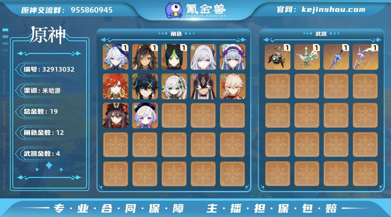 【YSX1866】56级/19黄/女主/12个五星角色/4个五星武器/胡桃/一命芙宁娜/基尼奇/纳西妲/丝柯克/枫原万叶/赛诺/玛薇卡/七七/一命提纳里/梦见月瑞希/一命迪希雅/波乱月白经津/阿莫斯之弓/金流监督/千夜浮梦