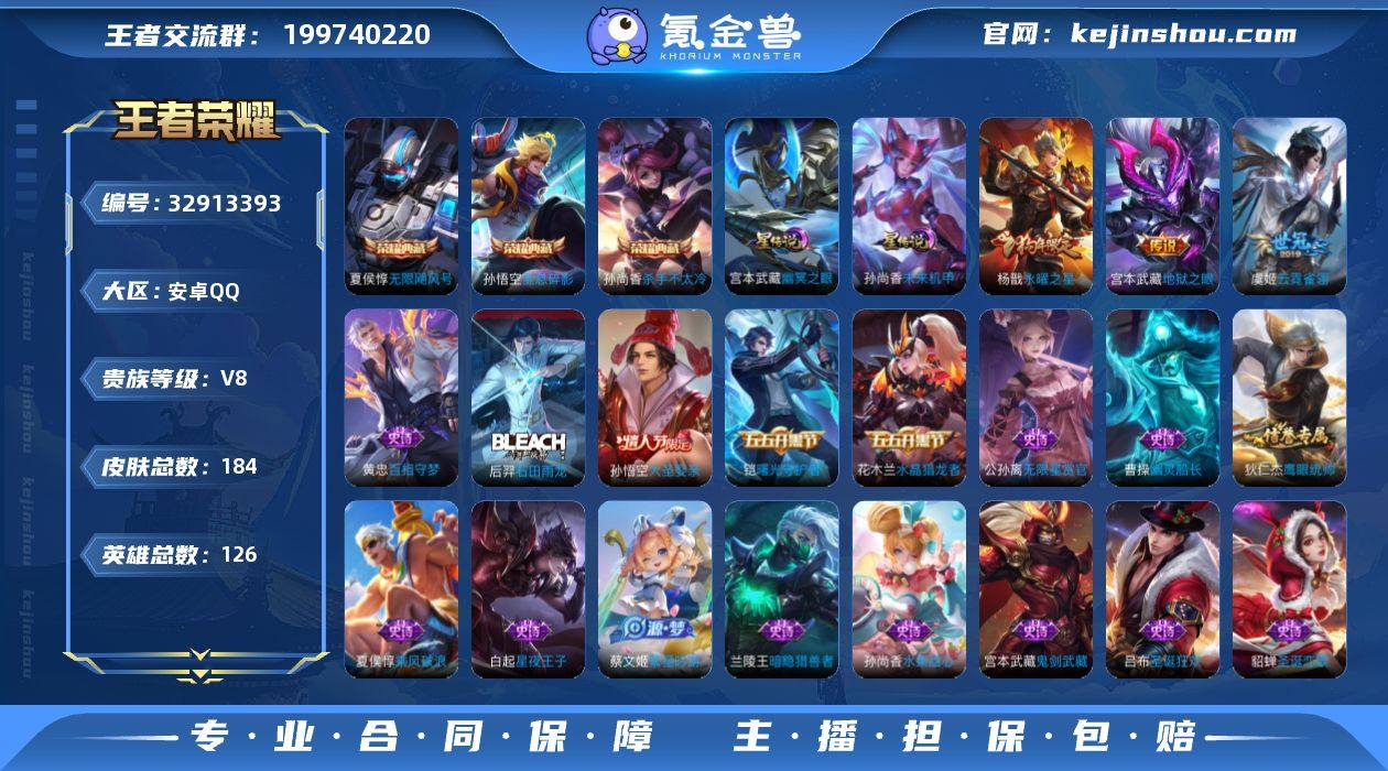 限飓风号·杀手不太冷·全息碎影·幽冥之眼·永曜之星·启明星使·妖精王·大圣娶亲·飞衡·青龙志·可二次】w21981-安卓Q-126英雄-184皮肤-9王者印记-250铭文-贵族积分5w【贵族8】【3典藏·2星传说·4传说】【因赛季更新游戏段付以上号为准!】 【荣耀典藏】:孙悟空全息碎影,夏侯惇无限飓风号,孙尚香杀手不太冷 【星元皮肤】:宫本武藏幽冥之眼,孙尚香未来机甲 【传说皮肤】:虞姬启明星使,虞姬云霓雀翎,杨戬永曜之星,宫本武藏地狱之眼 【限定皮肤】:白起狰,狄仁杰阴阳师,虞姬凯尔特女王,赵云皇家上将,鲁班七号狮舞东方,高渐离死亡摇滚,孙膑妖精王,扁鹊炼金王,芈月重明,周瑜赤莲之焰,夏侯惇朔风刀,曹操烛龙,典韦穷奇,典韦蓝屏警告,狄仁杰魔术师,狄仁杰万华元夜,项羽海滩派对,老夫子醍醐杖,程咬金演武夺筹,韩信飞衡,兰陵王驯魔猎人,孙悟空大圣娶亲,牛魔御旌,李元芳银河之约,虞姬启明星使,钟馗神迹守卫,钟馗驱傩正仪,杨戬永曜之星,女娲朔望之晖,蔡文姬繁星吟游,太乙真人饕餮,鬼谷子原初探秘者,铠青龙志,弈星混沌棋,沈梦溪星空之诺,明世隐疑决卦,裴擒虎李小龙,狂铁御狮,米莱狄御霄,盾山御銮,上官婉儿梁祝,桑启海盐诗旅,张良古海寻踪,刘邦...