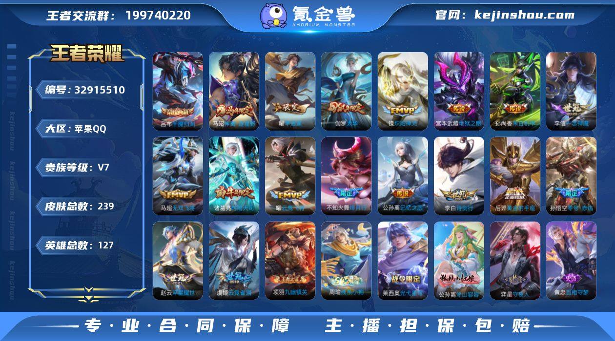 编号A00241 不可二次 V7 239皮肤 1典藏 17传说 千魇归渊 李逍遥 神威 零号·赤焰 时雨天司 绯月行 太华 神骥·逐星野 冰霜恋舞曲 埋骨钱 守夜人 云鹰飞将 云霓雀翎 诗剑行 记忆之芯 一念神魔 地狱之眼 炽阳神光 黄金射手座 孙尚香-末日机甲 无双飞将 淬星耀世 逐浪之夏 优雅恋人 玩趣恶龙 无心 暗影游猎 云间偶戏 蔷薇恋人 航海奇遇记 冰冠公主 街头霸王 乱世虎臣 李小龙