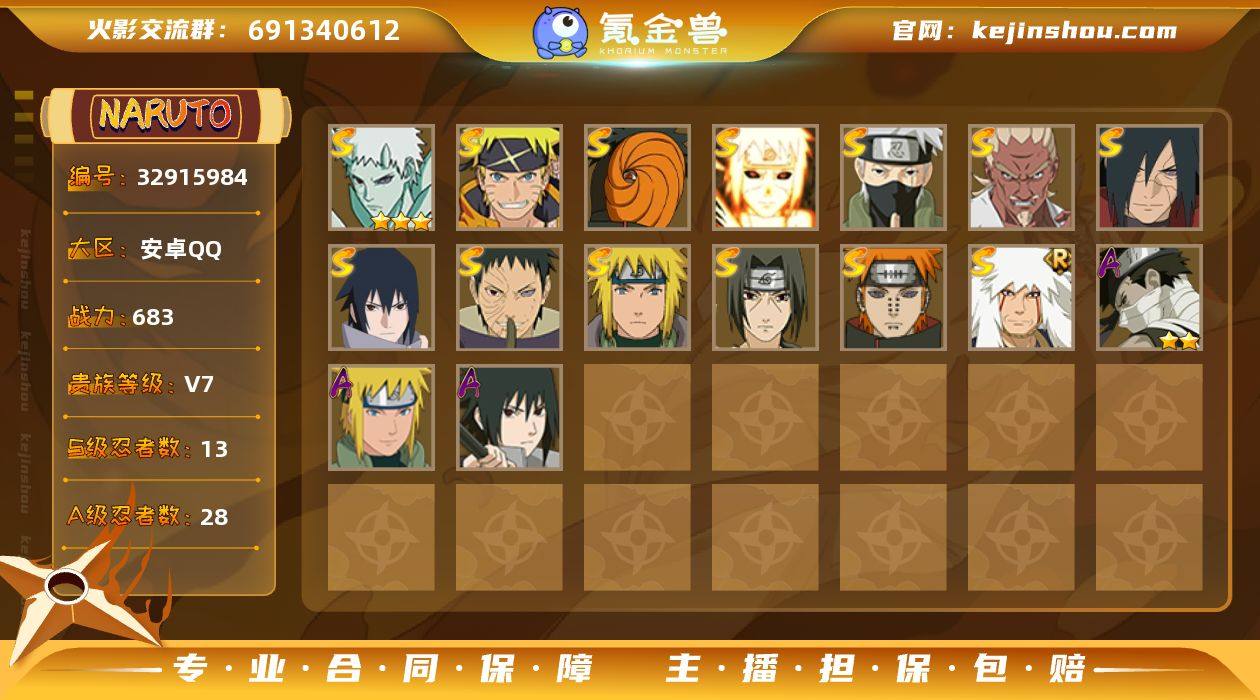 HY21962|安卓QQ 3463区 S忍者数:13 A忍者数:28 时装10安卓QQ 3463区 S忍者数:13 A忍者数:28 忍者:宇智波带土「十尾人柱力」,漩涡鸣人·宇智波佐助,宇智波斑「五影会谈」,波风水门「九喇嘛连结」,旗木卡卡西「须佐能乎」,艾「忍界大战」,宇智波斑「秽土转生·解」,宇智波佐助「永恒万花筒」,宇智波带土「忍界大战」,自来也「舞之豪杰」,宇智波鼬「须佐能乎」,佩恩「天道」,波风水门,小南「神驹佑将」,迈特凯「青春爆炸」,纲手「妖怪奇谭」,巳月「仙人模式」,机械鸣人「初始形态」,桃地再不斩「秽土转生」,宇智波泉奈,蝎「绯流琥」,李洛克「忍界大战」,漩涡博人「桃式显现」,日向宁次「忍界大战」,不缘,长十郎「六代目水影」,波风水门「青年」,宇智波佐助「须佐能乎」,千代「近松十人卫」,秋道丁次「忍界大战」,猿飞日斩「火影继承人」,宇智波佐助「万花筒写轮眼」,飞段「死司凭血」,飞段,迪达拉,我爱罗「疾风传」,蝎,干柿鬼鲛,宇智波鼬,猿飞阿斯玛,迈特凯,佩恩「畜生道」,重吾「忍界大战」,日向花火「武当宗师」,佩恩「地狱道」,雨琉「羁绊」,野原琳「漂泊浪客」,佐井「最终章」,御手洗红豆「新春限定」,佩恩「饿鬼道」,犬塚花,奈良鹿丸「最终章」,佩恩「人间道」,天天「峨眉宗师...