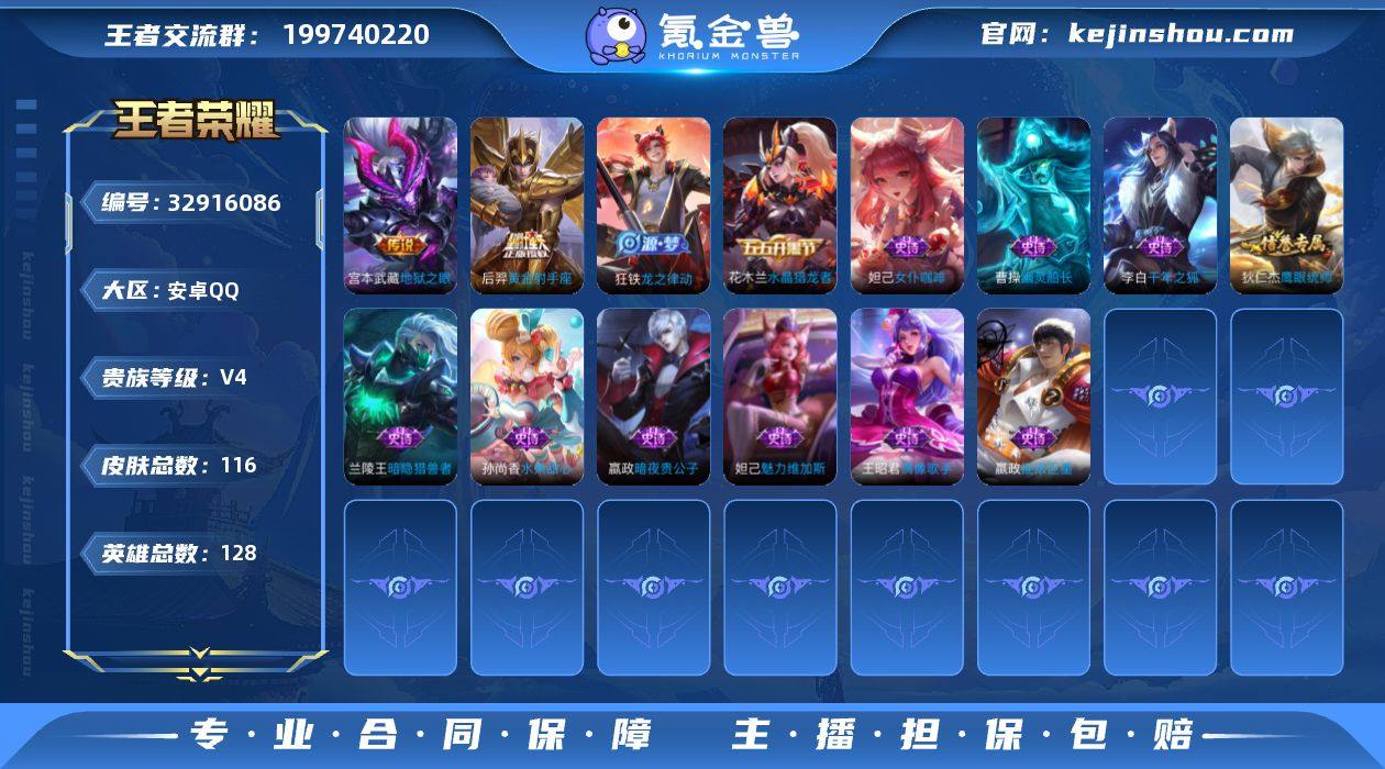 V4 3传说 128英雄 116皮肤 可修改实名 女号