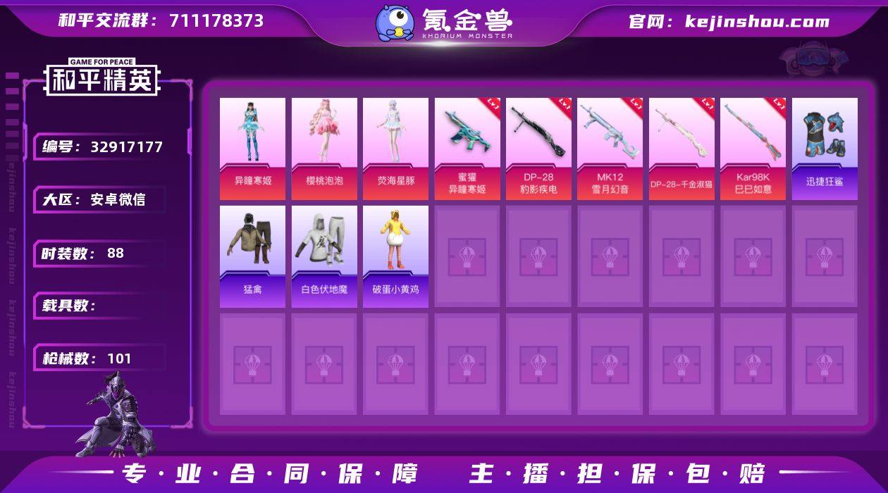 3粉装 6粉枪 88套装 101枪皮 7热门 滨海厨神 黄色名流 猛禽 破晓战魂 耀粉歌者 柠萌假日 冷焰舞者 竞技名士 玉兔迎春 绯格组合 街头潮人 蓝彩潮人 绮丽涂鸦 旭日情侣 缤纷果语 幻影武者 都市魅力 角色-樱桃泡泡 角色-异瞳寒姬 角色-荧海星豚 S686-生命誓言 Kar98K-影袭 S12K-夜灯 UMP45-夜灯 AKM-破晓战魂 SCAR-L-夜灯 M16A4-幻世战舞者 Vector-暗夜玫瑰 MK12-雪月幻音(6级) DP-28-千金淑猫(4级) 蜜獾-异瞳寒姬(4级) Kar98K-巳巳如意(5级) DP-28-豹影疾电(5级) 迅捷狂鲨 白色伏地魔 M762-天降萌叽 M249-彩虹符号 GROZA-春暖花开 破蛋小黄鸡 长空猛禽 炫彩糖果飞行器 牡丹亭・游园飞行器