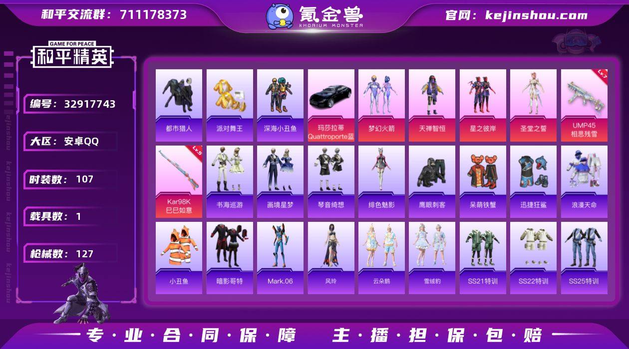 安卓 【素材号 粉装-梦幻火箭/套装-浪漫天命/套装-都市猎人/套装-派对舞王/套装-暗影哥特/蓝螳螂/UMP45-相思残雪(七级)/玛莎拉蒂Quattroporte(夜幕蓝)】手Q-4粉装-5特效枪-1载具-1粉色飞行器-40480热力值-5王牌印记-107套装-127枪皮 【热门品类】:粉装-梦幻火箭,套装-浪漫天命,套装-都市猎人,套装-派对舞王,套装-深海小丑鱼,套装-小丑鱼,套装-暗影哥特,角色-Mark.06 【粉色套装】:粉装-梦幻火箭,粉装-天禅智恒,粉装-星之彼岸,角色-圣堂之誓 【粉色枪皮等级】:UMP45-相思残雪(七级),AKS-74U-森灵之息(五级),Kar98K-巳巳如意(五级),Mk14-福马献瑞(五级),AA12-G-萌骑幻想(三级) 【粉色载具】:玛莎拉蒂Quattroporte(夜幕蓝) 【粉色枪皮】:UMP45-相思残雪,AKS-74U-森灵之息,Kar98K-巳巳如意,Mk14-福马献瑞,AA12-G-萌骑幻想 【粉色飞行器】:炫彩糖果飞行器 【粉色降落伞】:绝对恒星降落伞,星之彼岸降落伞,相思残雪降落伞,垂柳戏鸭降落伞,莲影清波降落伞,异瞳寒姬降落伞,炫彩糖果降落伞 【稀有套装】:套装-雪国风尚,套装-炫彩糖果,套装-马上来财,角色-风玲,套装-云朵鹅,套装-雪绒豹,角色-绯色魅影,套装-书海巡游,套装-画境星梦,套装-琴...