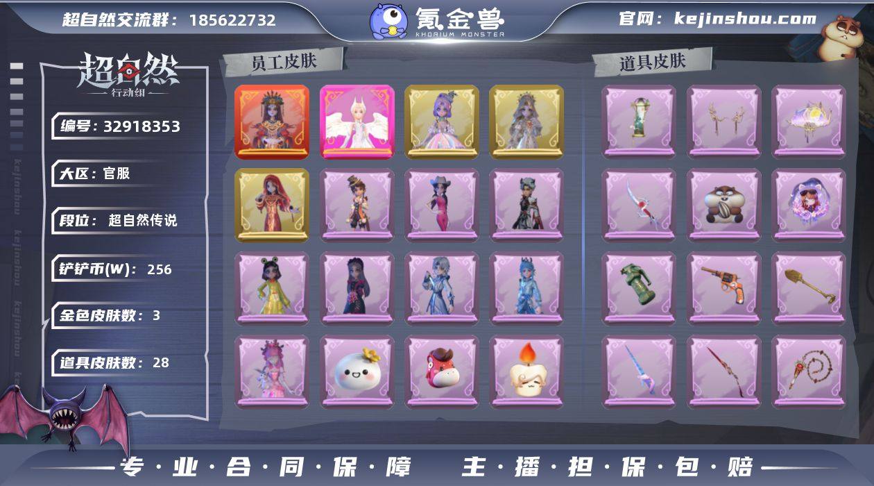 红皮1;粉皮1;金皮3;紫皮8;道具皮28;皮肤:小黄-炽天使,巫铃儿-镜生遗梦,薇薇安-圣光之谕,巫铃儿-镜花辞,小黄-遗失的童话,莉莉-情公主,阿念-庆宴绮愿,小黄-呱呱雨衣,爱丽丝-耀眼的你,艾伦-水王子,爱丽丝-丝缕哀歌,艾伦-黎明猎手,零-青云逸歌;道具:转轮手枪-新星时代,腰包-红运福虎,急救包-土拨鼠捏捏,长鞭-小狗蛇点点鞭,桃木剑-凤鸣九天,闪光弹-金戈玄铜,传送按钮-幻宠之门,桃木剑-最后的独角兽,摸金符-祝祷词,音响-happy猫,葫芦-伏妖塔,铲子-龙鳞,传送按钮-浮生一梦,传送按钮-昆仑镜,长鞭-缚誓之锁,专业手电-云端梦想计划,喷气背包-乘风溯雪,折扇-露露扇,长鞭-飞天绫,短管猎枪-赞萌露比水枪,刺刀-铂刺与红萼,黄牛能量饮料-青玉抱丹,折扇-赴此良宵,夜视仪-金丝眼镜,额外的背包-飞花令,急救包-蔷薇物语,夜视仪-敛花容,伞-伞;美妆:美妆-天使之泪;饰品:头饰-精致露比头套,头饰-火爆了头套,头饰-哈士奇头套,头饰-烈焰红唇头套,头饰-烛光纪念,头饰-蒜了八,头饰-面具马头套,头饰-小狗蛇点点头套,头饰-腊肠扭扭,头饰-卑微头套,头饰-萨卡班甲鱼头套,头饰-马上有钱,头饰-滑稽头套,头饰-芝麻糊汤圆,头饰-鱼头怪头套,头饰-嘻嘻头套,头饰-呆滞头套,头饰-惊魂南瓜头套,头饰-炙热...