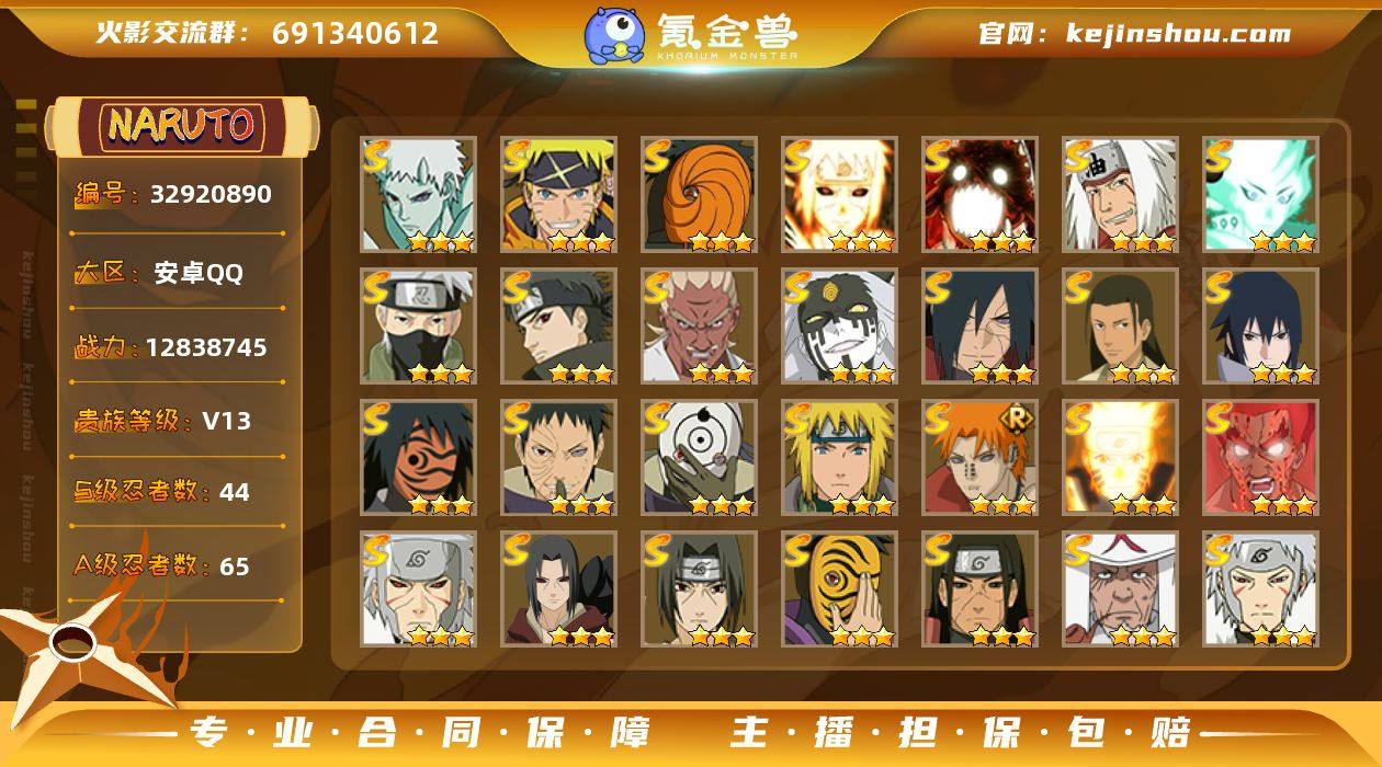 51000多金币 1915点券 70多张高级招募券 16张忍者之印 限定b忍若干