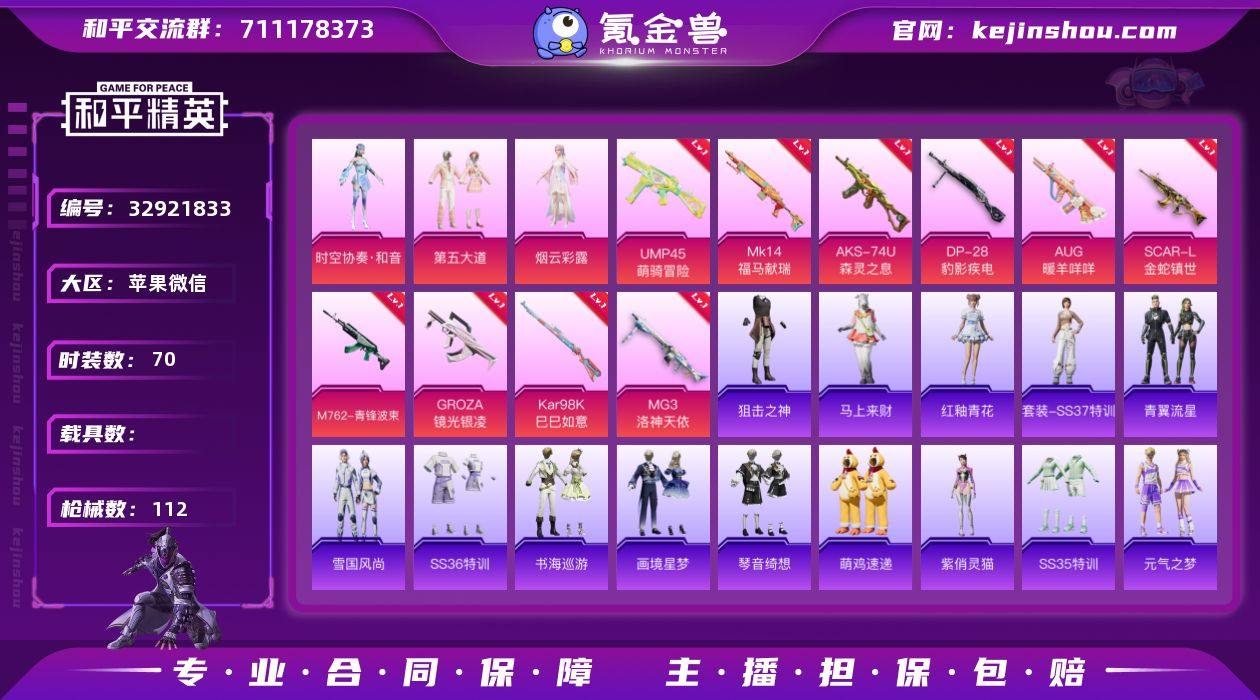 【10特效枪3粉装】 苹果V区-36474热力值-6印记-70套装-112枪皮 【3粉装】 第五大道 角色-烟云彩露 时空协奏·和音【10特效枪】 SCAR-L-金蛇镇世(3级) AKS-74U-森灵之息(5级) Mk14-福马献瑞(5级) UMP45-萌骑冒险(3级) MG3-洛神天依(4级) M762-青锋波束(5级) Kar98K-巳巳如意(5级) AUG-暖羊咩咩(5级) GROZA-镜光银凌(5级) DP-28-豹影疾电(5级)【141热门】 浪漫天命 鹰眼刺客 破蛋小黄鸡 暗影哥特(红眼罩) Mk47-洛神天依 M762-天降萌叽 MG3-幻世战舞者 呆萌铁蟹 M416-蓝色火焰 长空猛禽 青年教官 MK12-金蛇镇世 AA12-G-雨过天青 沙漠之鹰-雨过天青 平底锅-画境星梦 M16A4-雨过天青 顶瓜瓜 白辉玉蕊 雨过天青 蝶吟花词 MG-36-薄荷星砂 GROZA-福马献瑞 恋语绒绒 SS34特训 朱霞炽焰 撬棍-冰晶雪宝 AWM-天降萌叽 福马献瑞 凌霄紫焰 蓝冰羽 临安公主 SS30特训 ACE32-冰晶雪宝 青团波波 鱼渊荷华 擎苍青焰 糖糖葫芦 青翼流星 战术弩-极夜星羊 沙漠之鹰-羲和光序 PKM-啾咪啾咪 燕燕于飞 SS31特训 SS33特训 SS32特训 巳巳如意 紫幽梦 棉花软糖 狂鲨锋刃 SS36特训 焰舞炽心 老实芭蕉 异域银装 智谋强哥 战术大师 JS9-凌霄紫焰 MG-36-凌霄紫焰 马上来财 蜜獾-启元战纹 ARX-凌霄紫焰 P92-凌霄...
