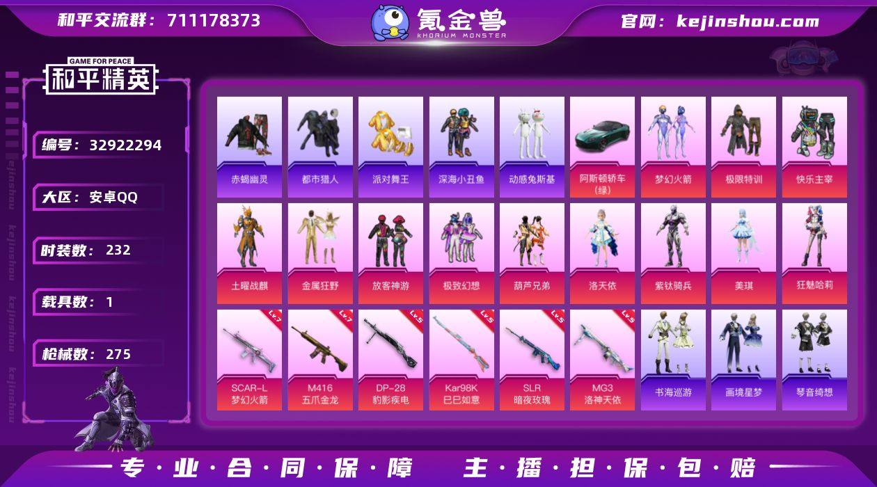【kyhp1421】安卓 手Q-14粉装-9特效枪-1载具-5粉色飞行器-92774热力值-13王牌印记-232套装-275枪皮 【热门品类】:粉装-梦幻火箭,套装-浪漫天命,套装-赤蝎幽灵,套装-都市猎人,套装-派对舞王,套装-深海小丑鱼,套装-小丑鱼,套装-动感兔斯基人偶服,套装-龟仙人,套装-暗影哥特 【粉色套装】:粉装-极限特训,粉装-快乐主宰,粉装-土曜战麒,粉装-梦幻火箭,粉装-金属狂野,粉装-放客神游,粉装-极致幻想,粉装-葫芦兄弟,角色-洛天依,角色-紫钛骑兵,角色-美琪,角色-狂魅哈莉,角色-烬夜之誓,角色-月中灵 【粉色枪皮等级】:SCAR-L-梦幻火箭(七级),M416-五爪金龙(七级),UMP45-萌骑冒险(三级),AKS-74U-森灵之息(五级),Kar98K-巳巳如意(五级),Mk14-福马献瑞(五级),SLR-暗夜玫瑰(五级),DP-28-豹影疾电(五级),MG3-洛神天依(五级) 【粉色载具】:阿斯顿马丁DBS(绿) 【粉色枪皮】:SCAR-L-梦幻火箭,M416-五爪金龙,UMP45-萌骑冒险,AKS-74U-森灵之息,Kar98K-巳巳如意,Mk14-福马献瑞,SLR-暗夜玫瑰,DP-28-豹影疾电,MG3-洛神天依 【粉色飞行器】:炫彩糖果飞行器,梦幻火箭飞行器,心之恋语飞行翼,辉光之愿飞行器 【粉色降落伞】:绝对恒星降落伞,极限特训降...