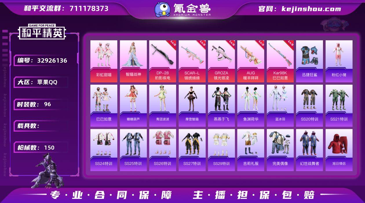 YZJ16257-可二次- 苹果Q-2粉装6特效枪3热门96套装150枪皮 41408热力值 15印记 历史卓越王牌17星 【精品小女号 智耀战神 彩虹甜喵 迅捷狂鲨 】【2粉装】 智耀战神 彩虹甜喵 【6特效枪】 SCAR-L-锦绣绵绵 (5级) Kar98K-巳巳如意 (5级) DP-28-豹影疾电 (5级) AUG-暖羊咩咩 (5级) GROZA-镜光银凌 (5级) Mk14-福马献瑞 (5级) 【3热门】 迅捷狂鲨 粉红小猪 破蛋小黄鸡 【1飞行器】 拂晓神骑飞行器 【2背包】 梦幻火箭背包 深海小丑鱼背包 营地ID:924211400