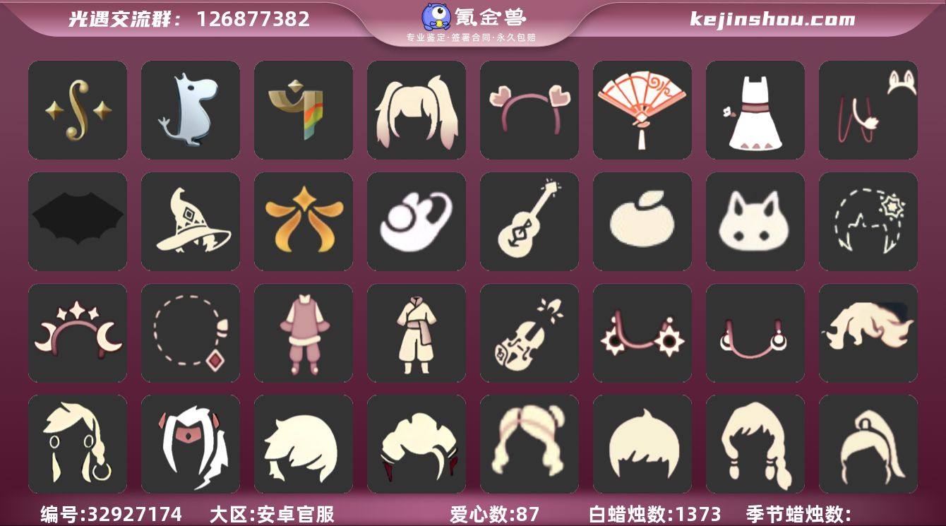 编号AY444 安卓手机 换绑CD4.28 详情请看衣柜截图 蜡烛数:1373 爱心数:87 季节已毕业:二重奏季 姆明季 彩染季 完成地图:雨林 霞谷 礼包:向日葵连衣裙 兔子鞋 暗彩装扮 新年裤 姆明饰品套装 巫师 渐变双马尾发型礼包 橘子 雪花 兔子 心心相印发饰礼包 星月头饰 彩虹耳钉 日光耳环 满月耳坠 欧若拉之翼 蝙蝠套 吉他 献瑞折扇礼包 小提琴 裤子:遥鲲裙 乞丐裤 古风裤 小灰裙 姆明季·裤子 妮妮裙子 彩染挑衅艺伎裤子 五周年裤子 万圣裤 灯笼裤 连体裤 武士裤 猫猫裤 猎手长袍 鞋子:布鞋 鱼嘴凉靴 姆明季·鞋子 彩染挑衅艺伎鞋子 青鸟伐木不舍鞋子 万圣鞋 芭蕾鞋 寻宝长靴 面具:矮人面具 白色条纹面具 星绘面具 贴花面具 玫瑰面具 黑脸 面饰:蒙眼面巾 青鸟毕业面饰 青鸟占卜智慧面饰 蔚蓝眼镜 发型:公主 书虫 总裁发型 正太 高马尾 明制 若笠 花环 斜刘海发型 虚荣 冥龙长辫 吊环双辫发型 樱花 猫耳 帽匠绅士发型 头饰:小鸟头饰 黄色蝴蝶结 花环 珊瑚 太阳帽 红耳机 斗篷:白斗 菱形斗篷 白金 蝴蝶斗篷 黄色蓑衣 姆明季·斗篷 樱花斗 绿芽 海洋斗 彩虹斗 圣诞斗 配饰:笛子 贝斯乐器 大提琴 小红伞 寻宝铲 三角钢琴 姆明抱枕 爱心抱枕 当前身高 2.91761022650362...
