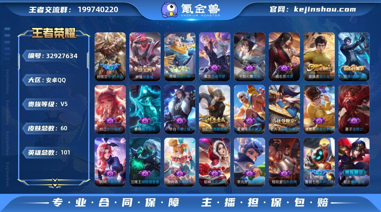 可换绑【精品小号·猴子零号赤焰·乒乒小将】 3885星币 五级铭文60 可二次BX5829 安卓Q-V5-60皮肤-1传说-22史诗【传说皮肤】:孙悟空零号赤焰【限定皮肤】:狄仁杰阴阳师,赵云皇家上将,墨子神迹守卫,鲁班七号乒乒小将,狄仁杰万华元夜,项羽海滩派对,老夫子醍醐杖,老夫子航海奇遇记,亚瑟潮玩骑士王,孙悟空零号赤焰,钟馗驱傩正仪,鬼谷子原初探秘者,明世隐疑决卦,裴擒虎李小龙,裴擒虎擒涛扼浪,鲁班大师探海日志,张良古海寻踪【赛季限定】:明世隐疑决卦,老夫子醍醐杖,鬼谷子原初探秘者,狄仁杰万华元夜,钟馗驱傩正仪,裴擒虎擒涛扼浪,鲁班大师探海日志,张良古海寻踪【战令限定】:亚瑟潮玩骑士王,老夫子航海奇遇记,墨子神迹守卫,周瑜线条小狗【史诗皮肤】:钟馗锁墨魂,周瑜线条小狗,黄忠百相守梦,鲁班七号乒乒小将,老夫子航海奇遇记,裴擒虎李小龙,橘右京修罗,不知火舞魅语,狄仁杰鹰眼统帅,阿轲节奏热浪,程咬金功夫厨神,李元芳逐浪之夏,铠曙光守护者,诸葛亮黄金分割率,兰陵王暗隐猎兽者,夏侯惇乘风破浪,李白千年之狐,曹操幽灵船长,墨子龙骑士,妲己女仆咖啡,孙尚香水果甜心,貂蝉圣诞恋歌,赵云皇家上将【其他皮肤】:艾琳鹤鸣心笺,莱西...