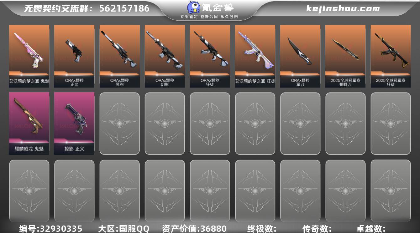套装: 2022全球冠军赛,2025全球冠军赛,ORAx颗秒 近战武器皮肤: 2025全球冠军赛 蝴蝶刀,ORAx颗秒 军刀 步枪皮肤: 狂徒-艾沃莉的梦之翼,2025全球冠军赛 狂徒,幻影-ORAx颗秒,狂徒-ORAx颗秒 佩枪皮肤: 鬼魅-耀鳞威龙,鬼魅-艾沃莉的梦之翼,正义-掠影,正义-ORAx颗秒 狙击枪皮肤: 冥驹-ORAx颗秒
