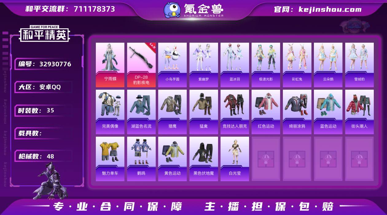 可二次【特价出售/店主推荐】安卓 手Q-1粉装-2特效枪-11924热力值-2王牌印记-35套装-48枪皮【粉色套装】:角色-宁雨蝶【粉色枪皮等级】:Mk14-福马献瑞(五级),DP-28-豹影疾电(五级)