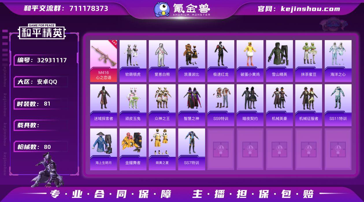 ZMH1385【M416-心之恋语[6级]】无二次包 安卓手Q-1特效枪-81套装-80枪皮-2王牌印记-英勇黄金Ⅱ-27803热力值【1特效枪】M416-心之恋语[6级]【1飞行器】粉色滑翔尾迹【1背包】古堡领主背包【160其它衣服和枪皮】海上生明月,SS11特训,逆风勇士,幻影武者,暗夜契约,SS18特训,暗夜傀儡,SS20特训,雪山征服者,酷潮明星,贵族骑装,刚毅裁决者,治愈之星,极速红龙,海洋之心,飞行日记,SS15特训,科技之星,都市漫游者,格斗先锋,众神之王,机械征服者,北国孤狼,战地菁英,白熊同盟,金鼠迎春,SS16特训,原初圣火,幻世战舞者,抹茶蜜豆,黑色伏地魔,长空猛禽,甜蜜告白,爱崽白熊,SS14特训,福星高照,浪漫波比,智慧之神,竞技勇士朋克,竞技名士,镭射皇者,银白舞王,金耀舞者,骑行爱好者,机械英豪,甜蜜熊情侣,迷域探索者,圣诞大吉,萌趣颜团子,SS13特训,SS5特训,熔岩使者,白色伏地魔,夏日音浪,破蛋小黄鸡,深蓝冒险家,顽皮玉兔,萌黄之夏,SS9特训,空投萌叽,SS17特训,冰川格斗者,黄色伏地魔,牛气冲天,SS10特训,灼焰舞者,雪山精英,登山爱好者,冰川特警,疯狂小兔子,凛冬战士,SS7特训,SS8特训,SS6特训,软萌银虎,霓虹街区,蓝色守护者,SS12特训,坚韧舞者,牛气满满,特殊使命,M16A4-幻世战舞者,M16A4-夜灯,AKM-玉龙,汤姆...