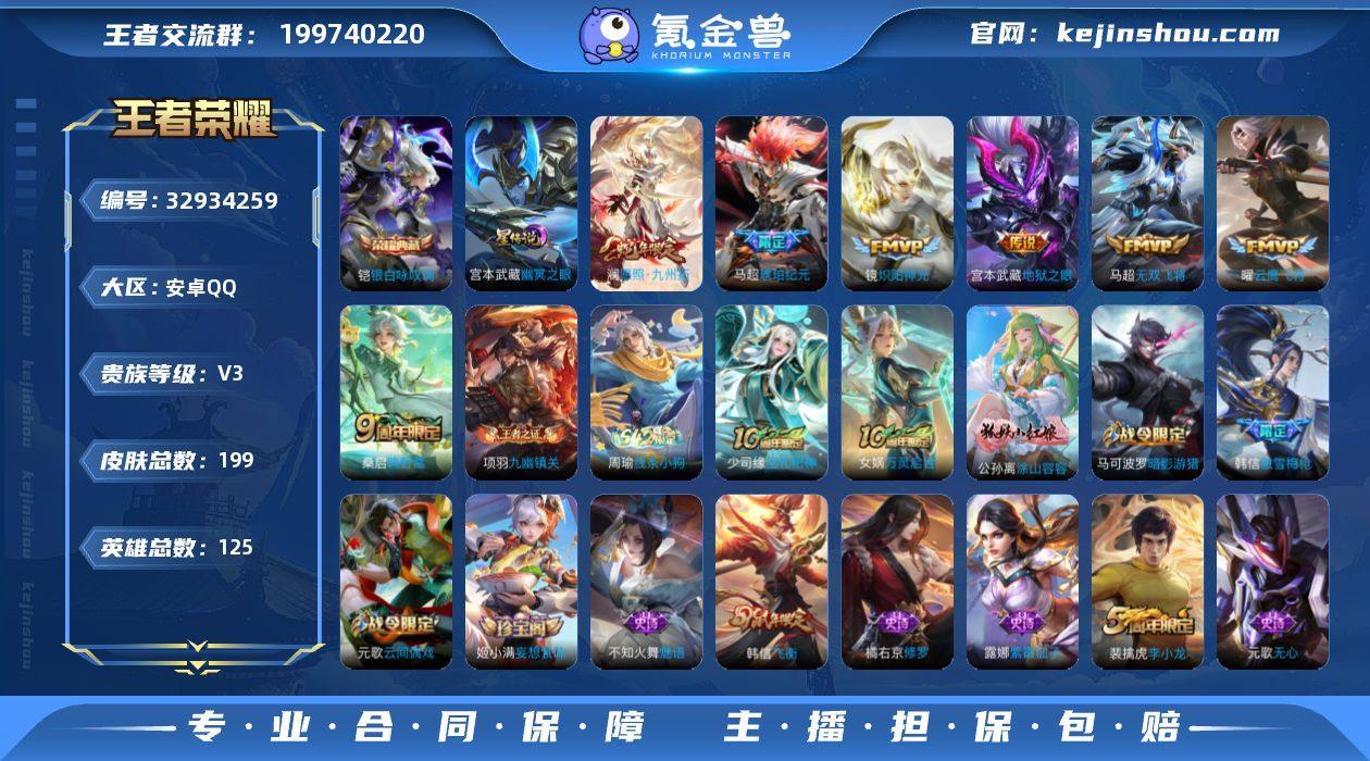 【高性价比·银白咏叹调·马超琥珀纪元·愿照九州拓·炽阳神光·无双飞将·云鹰飞将·可二次】YXw22743-安卓Q-125英雄-199皮肤-10王者印记-290铭文-贵族积分2w【贵族3】【1典藏·1星传说·7传说·4按键】【因赛季更新游戏段付以上号为准!】 【荣耀典藏】:铠银白咏叹调 【星元皮肤】:宫本武藏幽冥之眼 【传说皮肤】:澜愿照九州拓,桑启鸣野蒿,马超琥珀纪元,马超无双飞将,镜炽阳神光,曜云鹰飞将,宫本武藏地狱之眼 【限定皮肤】:狄仁杰阴阳师,赵云皇家上将,墨子神迹守卫,庄周高山流水,高渐离玩趣恶龙,吕布猎兽之王,元歌云间偶戏,元歌无心,马可波罗暗影游猎,狄仁杰魔术师,狄仁杰万华元夜,达摩沙漠行僧,项羽海滩派对,老夫子醍醐杖,老夫子航海奇遇记,程咬金演武夺筹,韩信飞衡,韩信傲雪梅枪,兰陵王金庭之子,亚瑟潮玩骑士王,李元芳云中旅人,钟馗驱傩正仪,干将莫邪胡桃夹子,蔡文姬繁星吟游,鬼谷子原初探秘者,鬼谷子五谷丰年,苏烈千军破阵,百里玄策原初追逐者,弈星混沌棋,梦奇顽趣,沈梦溪大漠名商,明世隐疑决卦,裴擒虎李小龙,裴擒虎擒涛扼浪,米莱狄御霄,云中君纤云弄巧,猪八戒西部大镖客,上官婉儿梁祝,鲁班大师探海日志,桑启海盐诗旅,阿古朵江河...
