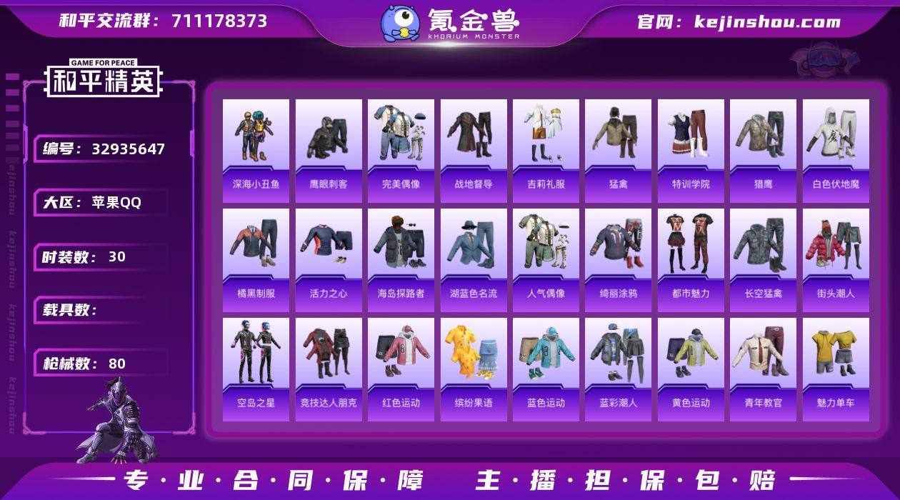 HX9398【深海小丑鱼--4特效枪-素材号】苹果 手Q-0粉装-4特效枪-0载具-0粉色飞行器-19205热力值-1王牌印记-62套装-80枪皮 【热门品类】:套装-深海小丑鱼,套装-龟仙人,套装-粉红小猪 【粉色枪皮等级】:ACE32-萌骑漫游(三级),AKS-74U-森灵之息(四级),Mk14-福马献瑞(五级),DP-28-豹影疾电(五级) 【粉色枪皮】:ACE32-萌骑漫游,AKS-74U-森灵之息,Mk14-福马献瑞,DP-28-豹影疾电 【粉色降落伞】:炫彩糖果降落伞 【稀有套装】:套装-龟仙人,套装-雪国风尚,套装-马上有钱,角色-多纳泰罗,套装-雨过天青,套装-红釉青花 【稀有枪皮】:AKM-影袭,AKM-霓虹街区,AKM-龙的传人,M16A4-幻世战舞者,SCAR-L-夜灯,SCAR-L-炫彩节奏,SCAR-L-玉兔迎春,SCAR-L-红色方程式,M416-红色方程式,M416-蓝色火焰,GROZA-影袭,GROZA-荧海星豚,AUG-天降萌叽,QBZ-彩虹符号,M762-天降萌叽,蜜獾-天降萌叽,UZI-啾咪啾咪,UZI-天降萌叽,UZI-炫彩节奏,UZI-红色方程式,UMP45-夜灯,UMP45-蓝色火焰,Kar98K-彩虹符号,M24-影袭,SKS-迅猛狂鲨,Mini14-穿刺龙虾,S686-彩虹符号,S1897-炫彩节奏,S12K-破晓战魂,S12K-夜灯,DBS-圣堂之誓,MG3-幻世战舞者苹果Q区-4特效枪-19205热力值-1...