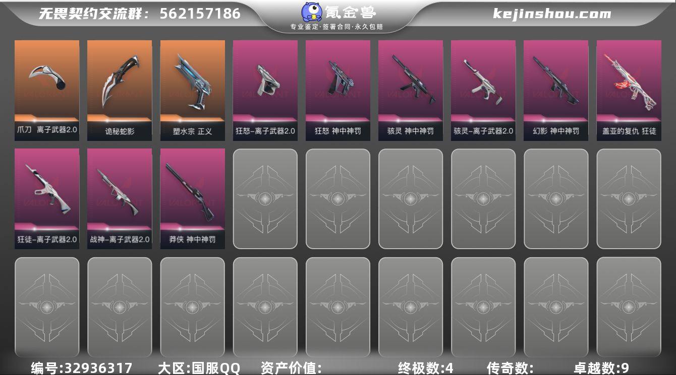 【套装】:神中神罚套装,离子武器//2.0套装 【英雄】:幻棱,炼狱,维斯,暮蝶,钛狐,壹决,铁臂,捷风,雷兹,幽影,不死鸟,贤者,猎枭,蝰蛇,零,芮娜,奇乐,尚勃勒,霓虹,斯凯,夜露,星礈,K/O,海神,盖可,黑梦,钢锁 【近战武器】:近战武器-神之刃,近战武器-离子武器//2.0 爪刀,近战武器-诡秘蛇影 军刀 【狂徒】:狂徒-盖亚的复仇,狂徒-离子武器//2.0,狂徒-诡秘蛇影 【幻影】:幻影-神中神罚,幻影-末日之翼 【戍卫】:戍卫-折光棱晶 【飞将】:飞将-末日之翼 【莽侠】:莽侠-神中神罚,莽侠-诡秘蛇影 【战神】:战神-离子武器//2.0 【奥丁】:奥丁-末日之翼 【判官】:判官-诡秘蛇影 【骇灵】:骇灵-离子武器//2.0,骇灵-神中神罚 【蜂刺】:蜂刺-折光棱晶 【标配】:标配-折光棱晶 【正义】:正义-塑水宗 【鬼魅】:鬼魅-诡秘蛇影,鬼魅-星云暗涌 【狂怒】:狂怒-离子武器//2.0,狂怒-神中神罚 【短炮】:短炮-末日之翼 【卡面】:《双城之战》拥抱 卡面,精灵大战 卡面,欢迎来到底城 卡面,南瓜盛典 卡面,正义的化身 卡面,梦幻奶茶 卡面,代号红色 卡面,新兵报到 卡面,V契约 卡面,无畏契约 卡面 【喷漆】:都算到了 喷漆,控场勿近 喷漆,捷风差距...