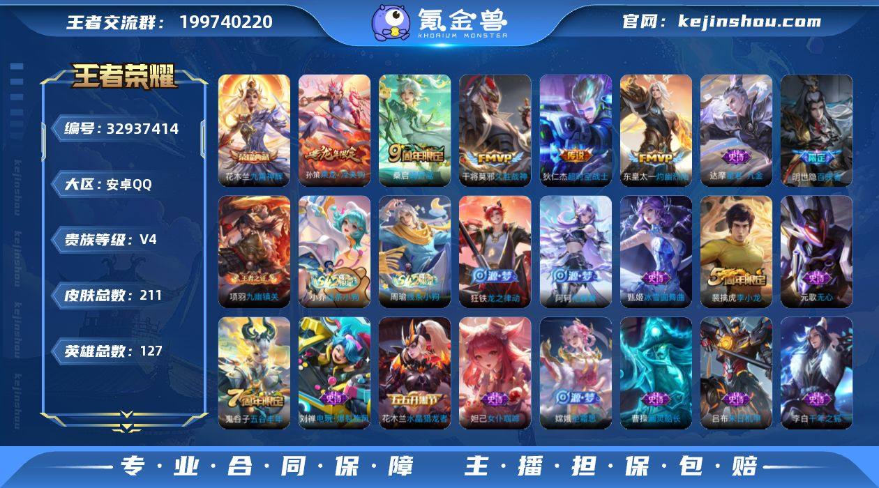 安卓Q-V4-最强王者段位-127英雄-211皮肤-1典藏皮肤-5传说-53史诗 【荣耀典藏】:花木兰九霄神辉 【传说皮肤】:桑启鸣野蒿,孙策乘龙淬吴钩,东皇太一灼幽烈阳,干将莫邪久胜战神,狄仁杰超时空战士 【限定皮肤】:狄仁杰阴阳师,嬴政优雅恋人,高渐离玩趣恶龙,元歌无心,夏侯惇朔风刀,甄姬游园惊梦,狄仁杰万华元夜,达摩沙漠行僧,项羽海滩派对,老夫子醍醐杖,程咬金演武夺筹,兰陵王金庭之子,牛魔御旌,李元芳云中旅人,钟馗驱傩正仪,雅典娜黎明之约,鬼谷子原初探秘者,鬼谷子五谷丰年,百里玄策原初追逐者,弈星混沌棋,梦奇顽趣,沈梦溪大漠名商,明世隐疑决卦,裴擒虎李小龙,裴擒虎擒涛扼浪,狂铁御狮,米莱狄御霄,盾山御銮,上官婉儿梁祝,嫦娥拒霜思,鲁班大师探海日志,桑启海盐诗旅,艾琳女武神,阿古朵江河有灵,张良古海寻踪,蒙恬荣光圣徽,鬼谷子天穹祈灯,孙策乘龙淬吴钩,沈梦溪龙舞盛年,刘邦剑破天穹,周瑜熔金海岸 【年限皮肤】:孙策乘龙淬吴钩 【赛季限定】:狂铁御狮,米莱狄御霄,牛魔御旌,盾山御銮,夏侯惇朔风刀,弈星混沌棋,明世隐疑决卦,老夫子醍醐杖,鬼谷子原初探秘者,狄仁杰万华元夜,程咬金演武夺筹,钟馗驱傩正仪,达摩沙漠行僧...