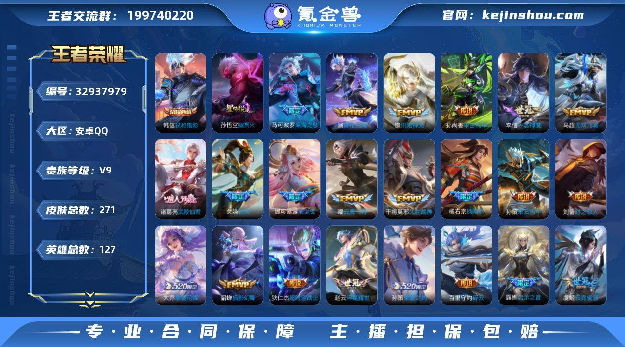 ky 金标公孙离 可认证 安卓(q)区 271皮 1典藏 27传说 76限定 4王者印记 1星 亮点推荐:【弑枪猎影 无双飞将 澜逐花归海 枫霜尽 炽阳神光 深海之息】道具内容:6按键