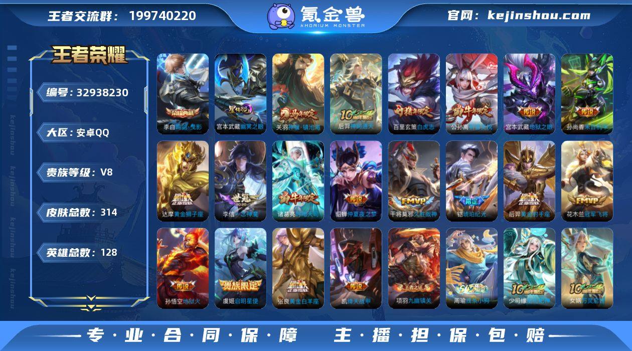 ky 金标钟馗 可认证 安卓(q)区 314皮 1典藏 18传说 104限定 19王者印记 1星 亮点推荐:【鸣剑·曳影 神骥·镇沧海 白虎志 时雨天司 仲夏夜之梦 黄金白羊座】道具内容:4按键 18浓情玫瑰