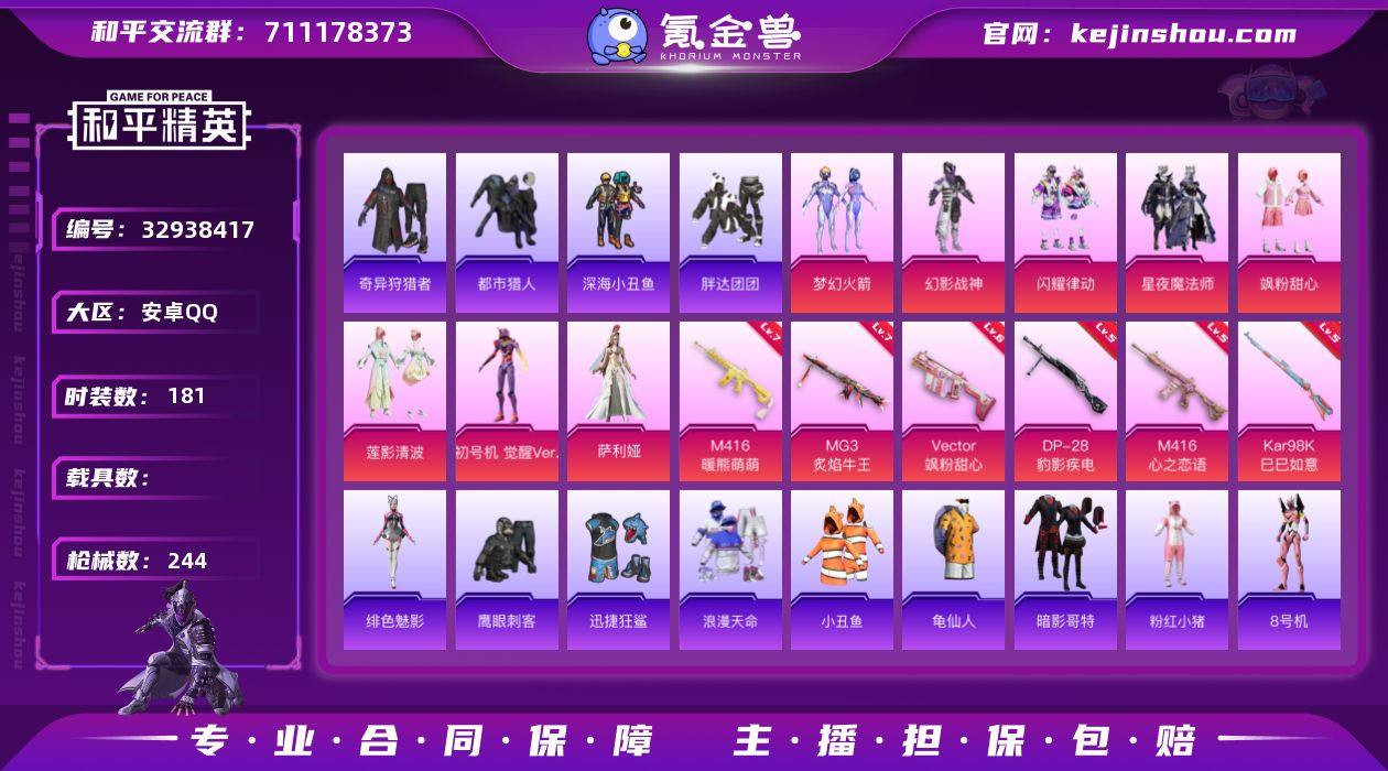 安卓 手Q-8粉装-7特效枪-0载具-2粉色飞行器-78624热力值-17王牌印记-181套装-244枪皮【热门品类】:粉装-梦幻火箭,套装-浪漫天命,套装-都市猎人,套装-深海小丑鱼,套装-小丑鱼,套装-奇异狩猎者,套装-胖达团团,套装-龟仙人,套装-暗影哥特,套装-粉红小猪,角色-8号机,角色-Mark.06【粉色套装】:粉装-幻影战神,粉装-梦幻火箭,粉装-闪耀律动,粉装-星夜魔法师,粉装-飒粉甜心,粉装-莲影清波,角色-初号机 觉醒Ver.,角色-萨利娅【粉色枪皮等级】:M416-心之恋语(五级),M416-暖熊萌萌(七级),Vector-飒粉甜心(六级),Kar98K-巳巳如意(五级),Mk14-福马献瑞(五级),DP-28-豹影疾电(五级),MG3-炙焰牛王(七级)【粉色枪皮】:M416-心之恋语,M416-暖熊萌萌,Vector-飒粉甜心,Kar98K-巳巳如意,Mk14-福马献瑞,DP-28-豹影疾电,MG3-炙焰牛王【粉色飞行器】:星夜魔法师飞行翼,拂晓神骑飞行器【粉色降落伞】:极限特训降落伞,百万伏特降落伞,春暖花开降落伞,梦幻火箭降落伞,神秘黑猫降落伞,暗夜玫瑰降落伞,洛神天依降落伞,暗星紫秘降落伞,甜梦小狐降落伞,炙焰牛王降落伞,星夜魔法师降落伞,暖熊萌萌降落伞,太空嘟嘟降落伞,旋转彩虹降落伞,海螺星光降落伞,...