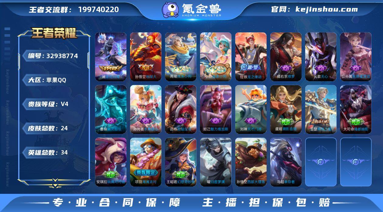 苹果Q-V4-至尊星耀III段位-34英雄-24皮肤-3传说-10史诗【英雄全皮】:敖隐全皮【传说皮肤】:马超神骥逐星野,澜逐花归海,孙悟空地狱火【限定皮肤】:元歌无心,项羽海滩派对【赛季限定】:亚瑟荣光之誓【战令限定】:周瑜线条小狗,小乔线条小狗【史诗皮肤】:周瑜线条小狗,小乔线条小狗,狂铁龙之律动,元歌无心,橘右京修罗,公孙离无限星赏官,刘禅天才门将,曹操幽灵船长,吕布圣诞狂欢,妲己魅力维加斯,孙尚香水果甜心【其他皮肤】:虞姬溯影追猎,亚瑟荣光之誓,大司命暗都幽影,王昭君幻想奇妙夜,安琪拉玩偶对对碰,项羽海滩派对,马超幸存者,曜归虚梦演,孙悟空西部大镖客【营地ID】:1763059374