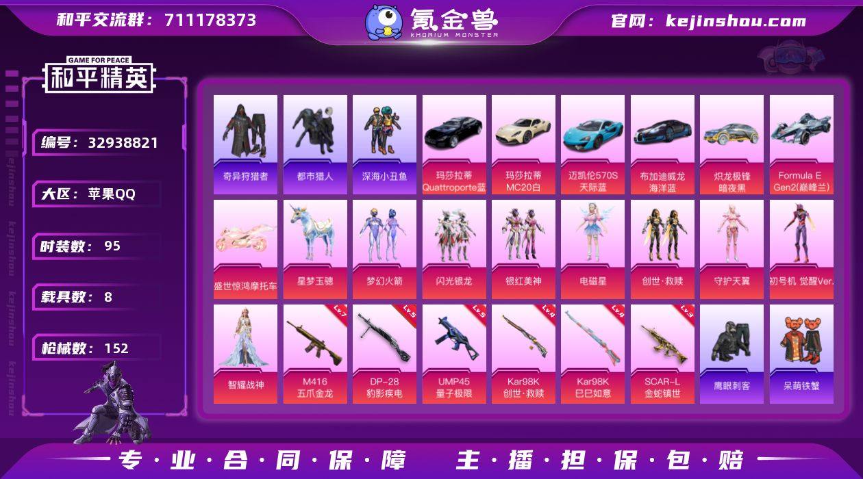 苹果 手Q-8粉装-6特效枪-8载具-8粉色飞行器-57293热力值-1王牌印记-95套装-152枪皮【热门品类】:粉装-梦幻火箭,套装-浪漫天命,套装-都市猎人,套装-深海小丑鱼,套装-奇异狩猎者,套装-暗影哥特,套装-粉红小猪,角色-8号机,角色-Mark.06【粉色套装】:粉装-梦幻火箭,粉装-闪光银龙,粉装-银红美神,角色-电磁星,套装-创世·救赎,角色-守护天翼,角色-初号机 觉醒Ver.,角色-智耀战神【粉色枪皮等级】:SCAR-L-金蛇镇世(三级),M416-五爪金龙(七级),UMP45-量子极限(五级),Kar98K-创世·救赎(四级),Kar98K-巳巳如意(四级),DP-28-豹影疾电(五级)【粉色载具】:玛莎拉蒂MC20(星石白),玛莎拉蒂Quattroporte(夜幕蓝),迈凯伦570S(天际蓝),布加迪威龙(海洋蓝),炽龙极锋(暗夜黑),Formula E Gen2(巅峰兰),盛世惊鸿摩托车,空客H135-蔚蓝之翼,星梦玉骢【粉色枪皮】:SCAR-L-金蛇镇世,M416-五爪金龙,UMP45-量子极限,Kar98K-创世·救赎,Kar98K-巳巳如意,DP-28-豹影疾电【粉色飞行器】:齐天大圣飞行器,闪光银龙飞行器,纯梦嫁纱飞行翼,龙翔九天飞行器,幻海精灵飞行器,深渊漩涡飞行器,曦光华影飞行器,万象金身飞行器【粉色降落伞】:至尊龙雀降落伞...