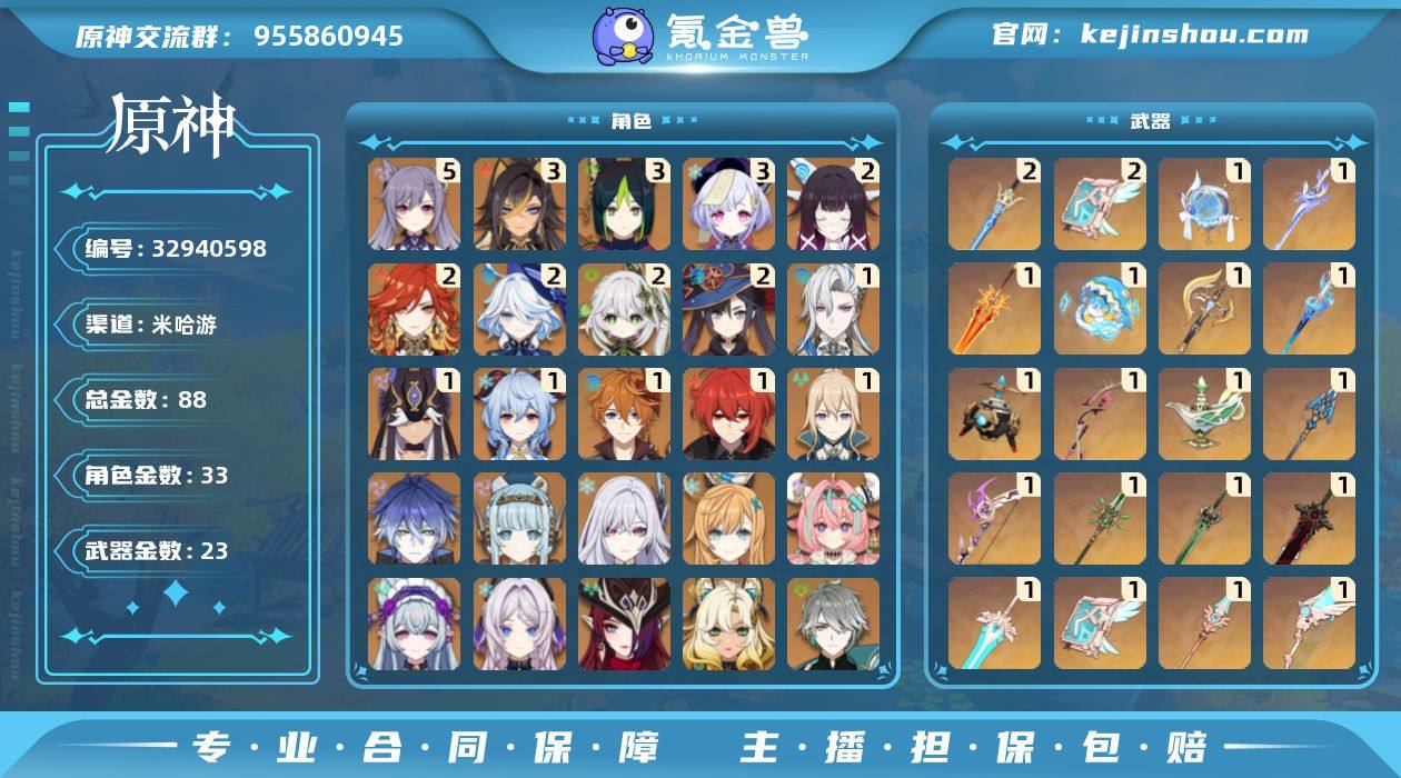 60级开服号 2+1草神,2+1水神,2+1火神,2+1月神 练度方面老深渊随便打