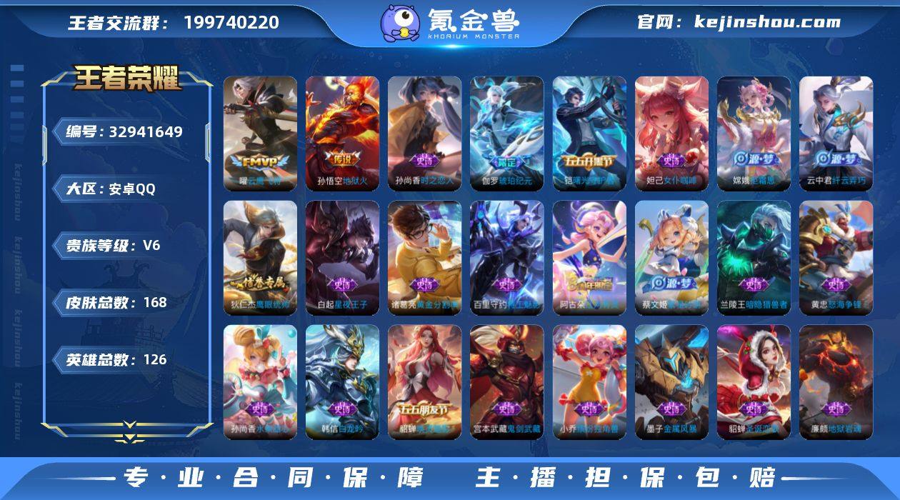 [18199936]V6 3传说 126英雄 168皮肤 可修改实名 男号 【稀有英雄】敖隐(小龙人),大司命,嬴政(始皇帝),韩信(韩跳跳),夏洛特(夏师傅),艾琳,橘右京(橘子),娜可露露(鸟人),不知火舞,赵云,金蝉(唐僧),戈娅 【传说皮】地狱火,云鹰飞将(小将军) 【珍宝阁皮】玩趣恶龙 【赛季/战令皮】噬灭天穹(s37),古海寻踪(s33),探海日志(s32),流音漫舞,地狱燃心,剑破天穹(s35),天穹祈灯(s34),青焰无极,苍威无极,天穹之誓(s36),混沌棋(s18),疑决卦(s19),醍醐杖(s20),原初探秘者(s21),万华元夜(s22),演武夺筹(s23),驱傩正仪(s24),千军破阵(s25),星际陆战队-达摩,胡桃异想国,沙漠行僧(s26),大漠名商(s28),云中旅人(s29) 【史诗皮】琥珀纪元伽罗,怒海争锋,紫霞仙子,白龙吟,黄金分割率,特工魅影,江河有灵,雪夜绮愿(周瑜),百解令(蒙犽),时之恋人-孙尚香,节奏热浪,女仆咖啡,摇滚巨星,水果甜心,星夜王子,暗隐猎兽者,鬼剑武藏,地狱岩魂,纤云弄巧,繁星吟游(呼啦呼啦),拒霜思,缤纷独角兽,曙光守护者,唤灵魅影,金属风暴,圣诞恋歌,鹰眼统帅,魅力维加斯,无心,未来纪元-赵云 【限定皮】逐霄战戟,鸣野蒿,五谷丰年,李小龙 【普通皮】谧流熔炉,动物派对,雾都夜雨,苍林狼骑,星梦巡礼,熔金海岸,大乔绒语心约,春野之旅...