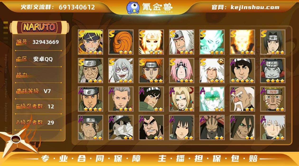 【编号38437 可秒换绑】【店长推荐!极品身法小号!!波风水门已解!12s 29a!!!】 12S级忍者数-29A级忍者数 【S级忍者】:猿飞日斩「秽土转生」(3星),春野樱「忍界大战」(3星),宇智波鼬「须佐能乎」(3星),自来也「舞之豪杰」(3星),自来也「传说中的三忍」(3星),药师兜「仙人模式」(3星),漩涡鸣人「九喇嘛连结」(3星),佩恩「天道」(3星),大筒木舍人「最终章」(3星),波风水门「九喇嘛连结」(3星),宇智波斑「五影会谈」(3星),漩涡鸣人·宇智波佐助(3星) 【A级忍者】:长门「青年」(2星),迪达拉(2星),飞段(3星),飞段「死司凭血」(2星),干柿鬼鲛(4星),漩涡鸣人「九尾查克拉」(2星),机械鸣人「初始形态」(2星),迈特凯(5星),旗木卡卡西「幻之真容」(2星),桃地再不斩「秽土转生」(2星),蝎(2星),蝎「绯流琥」(2星),小南「神驹佑将」(2星),角都「秽土转生」(2星),猿飞阿斯玛(4星),宇智波鼬(2星),宇智波佐助「须佐能乎」(2星),日向雏田「最终章」(2星),长十郎「六代目水影」(2星),秋道丁次「忍界大战」(2星),千代「近松十人卫」(2星),神农「羁绊」(2星),土台「忍界大战」(2星),不缘(2星),宇智波泉奈(2星),大野木「侠隐江湖」(2星),巳月「仙人模...