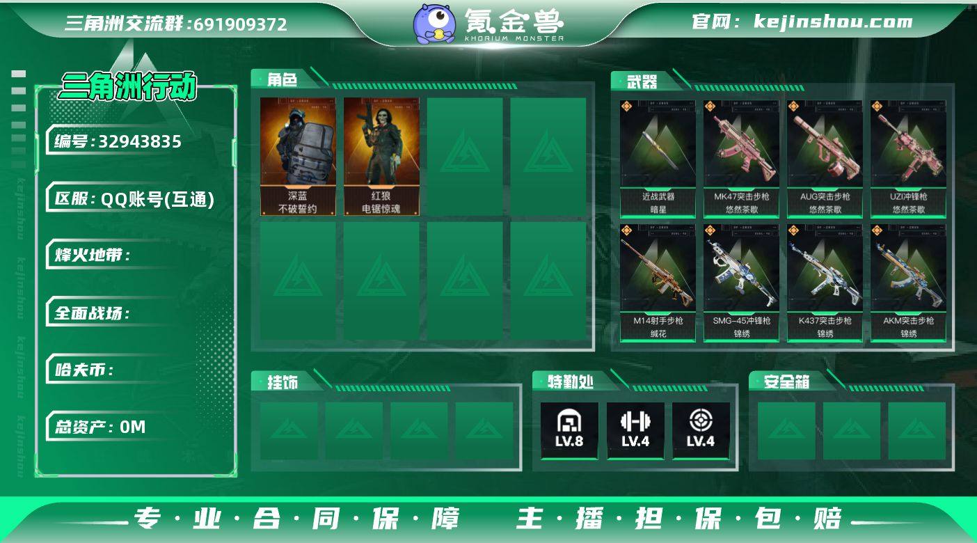 【红狼-电锯惊魂套+暗星套+S8赛季6格保险箱+总资产301.6M(流动279.1M+不动22.5M)+纯币135M+特勤等级(仓库8体力4负重4)+部门满级+烽火60级+S5赛季皮肤+捞点薯条捆绑包+缄花捆绑包+特斯拉捆绑包+锦绣捆绑包+悠然茶歇捆绑包+79发AW+咖啡豆+天才少年标】yx4029