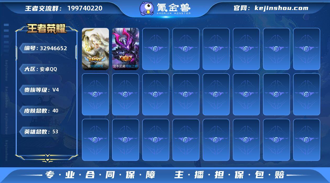 安卓Q 可二次 3传说 53英雄40皮肤3传说 音你心动女 炽阳神光 地狱之眼 百晓客 功夫厨神 幽灵船长 乘风破浪 街头霸王 摇滚巨星 冰雪圆舞曲 魅力维加斯 水果甜心 无心 鹰眼统帅 王者荣耀账号