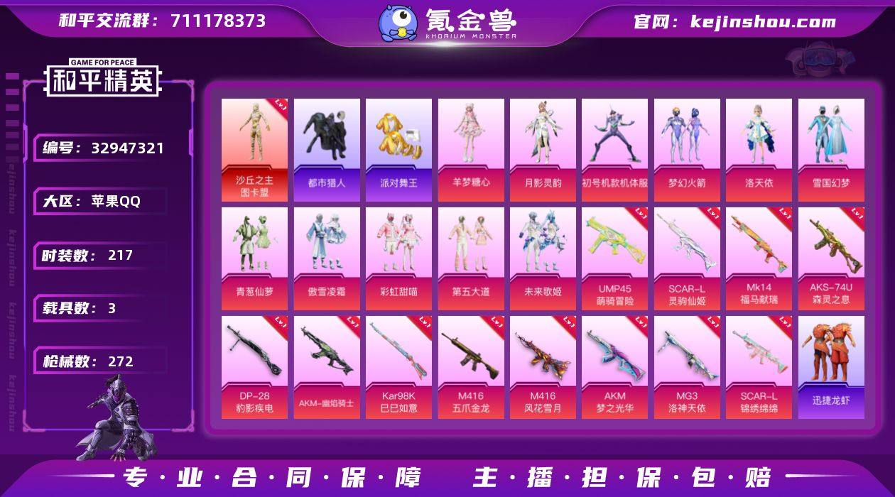 【4级图卡盟紫螳螂都市猎金鞋小番茄猫包红眼罩冰雪女王 12特效枪11粉装3载具素材号 秒换绑不用等】 苹果Q区-97802热力值-217套装-272枪皮 【1红装】 沙丘之主-图卡盟(4级)【3载具】 玛莎拉蒂M白色 玛莎拉蒂G绿色 兰博轿车灰色【6稀有】 都市猎人 派对舞王(金靴子) 红熊茄茄(权威小潘茄) 百万伏待背包(猫包) AKM-百万伏特 红眼罩【11粉装】 初号机款机体服(紫螳螂) 梦幻火箭 雪国幻梦(冰雪女王) 洛天依 傲雪凌霜 彩虹甜喵 青葱仙萝 第五大道 未来歌姬 角色-月影灵韵 角色-羊梦糖心【12特效枪】 AKM-幽焰骑士(3级) M416-五爪金龙(1级) M416-风花雪月(7级) AKM-梦之光华(5级) AKS-74U-森灵之息(5级) Mk14-福马献瑞(5级) UMP45-萌骑冒险(1级) SCAR-L-灵驹仙姬(3级) SCAR-L-锦绣绵绵(5级) MG3-洛神天依(5级) Kar98K-巳巳如意(5级) DP-28-豹影疾电(5级)【258热门】 暗影哥特(红眼罩) 浪漫天命 都市猎人(蓝口罩) 雪山精英(老6服) 激萌罗小黑 大橘为重 军刀雅典娜 团圆交子 瑞龙福将 Kar98K-终极赛罗 冰川格斗者 白色伏地魔 SS8特训 SS6特训 SS27特训 SS26特训 SS25特训 SS24特训 SS23特训 SS22特训 Mk47-洛神天依 GROZA-乌木金纹 SCAR-L-玉兔迎春 GROZA-田园牧歌 M762-天降...