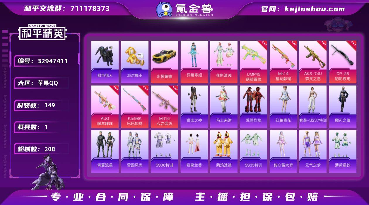 可二次实名【金鞋都市男神红眼罩满级M4心之恋语7特效枪2粉装1载具 秒换绑不用等】 苹果Q区-62223热力值-149套装-208枪皮 【1载具】 永恒黄蜂【3稀有】 都市猎人 派对舞王(金靴子) 红眼罩【2粉装】 莲影清波 角色-异瞳寒姬【7特效枪】 M416-心之恋语(7级) AKS-74U-森灵之息(5级) Mk14-福马献瑞(5级) UMP45-萌骑冒险(4级) Kar98K-巳巳如意(5级) AUG-暖羊咩咩(5级) DP-28-豹影疾电(5级)【192热门】 暗影哥特(红眼罩) 都市猎人(蓝口罩) 小丑鱼 军刀雅典娜 冰川格斗者 白色伏地魔 SS27特训 SS26特训 SS25特训 SS24特训 SS23特训 SS22特训 Mini14-梦幻火箭 AWM-飒粉甜心 SCAR-L-玉兔迎春 GROZA-田园牧歌 AUG-幻影战神 M762-天降萌叽 M762-彩虹符号 Mk47-乌木金纹 SKS-糯团青竹 UZI-娇憨猪猪 UMP45-蓝色火焰 M249-彩虹符号 MG3-幻世战舞者 AKM-霓虹街区 M416-蓝色火焰 GROZA-异彩先驱 破蛋小黄鸡 长空猛禽 异彩先驱 虚音幻奏 甜心亚梦 燃烧卡路里 牛气冲天 霓虹街区 霓虹极客 妙红点点 懵萌河马 魅力单车 竞技达人朋克 坚韧舞者 黄色运动 漫步者 黄色伏地魔 黑色伏地魔 和煦暖阳 海岛探路者 登山爱好者 纯真浪花 AA12-G-雨过天青 沙漠之鹰-雨过天青 P90-紫矿核心 GROZA-紫矿核心 M1...