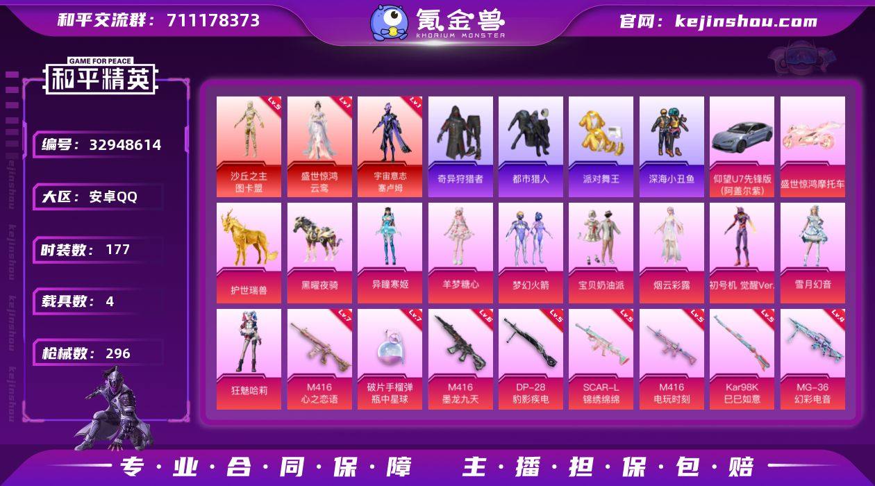 沙丘之主-图卡盟(五级)/绝世印记1 【特价出售/店主推荐】安卓 手Q-3神装-8粉装-18特效枪-4载具-16粉色飞行器-107779热力值-17王牌印记-177套装-296枪皮【红色神装等级】:盛世惊鸿-云鸾(一级),宇宙意志-塞卢姆(一级),沙丘之主-图卡盟(五级)【热门品类】:粉装-梦幻火箭,套装-浪漫天命,套装-都市猎人,套装-派对舞王,套装-深海小丑鱼,套装-奇异狩猎者,套装-龟仙人,套装-暗影哥特,角色-8号机,角色-Mark.06【粉色套装】:粉装-宝贝奶油派,粉装-梦幻火箭,角色-烟云彩露,角色-初号机 觉醒Ver.,粉装-雪月幻音,角色-狂魅哈莉,角色-羊梦糖心,角色-异瞳寒姬【粉色枪皮等级】:AKM-幽焰骑士(三级),SCAR-L-锦绣绵绵(五级),SCAR-L-魔童闹海 哪吒(三级),M416-心之恋语(七级),M416-电玩时刻(五级),M416-墨龙九天(六级),GROZA-精灵之光(二级),UMP45-宇宙意志(三级),AKS-74U-森灵之息(四级),Kar98K-巳巳如意(五级),M24-镜域双华(一级),Mk14-盛世惊鸿(二级),Mk14-福马献瑞(五级),AA12-G-萌骑幻想(二级),DP-28-豹影疾电(五级),MG-36-幻彩电音(四级),烟雾弹-甜梦果泡(三级),破片手榴弹-瓶中星球(七级)【粉色载具】:仰望U7(阿盖尔紫),盛世惊鸿摩托车,护世...