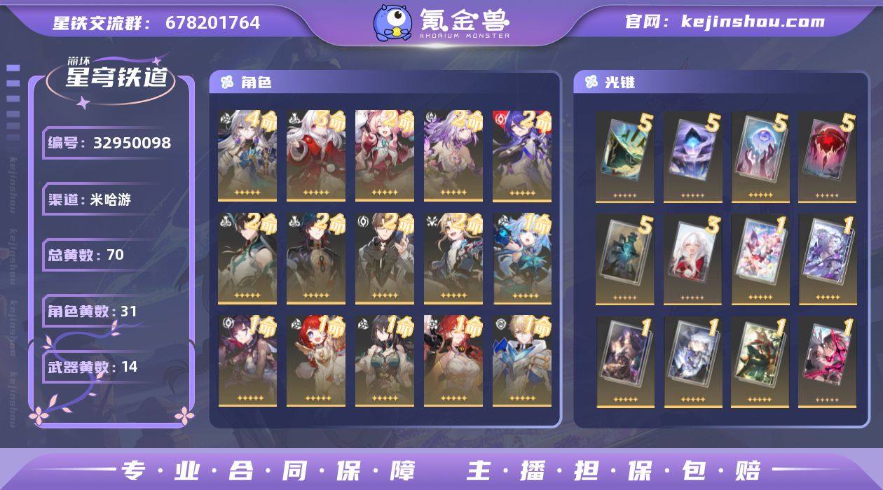 连体号崩铁和绝区零一块卖,崩铁号上有二加一遐蝶,二加一风堇,全员dot队一命海瑟音,白厄全队,绝区零上有二加一的叶瞬光,还有一个大保底,诚心出可砍价!