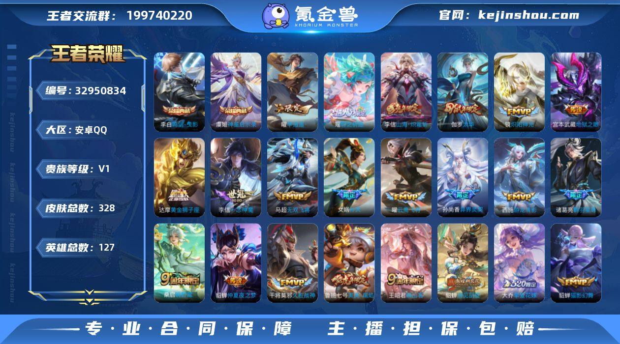 安卓Q-V0-永恒钻石III段位-127英雄-328皮肤-2典藏皮肤-29传说-112史诗 【英雄全皮】:孙权全皮 【荣耀典藏】:李白鸣剑曳影,虞姬神鉴启示录 【传说皮肤】:王昭君映山客,桑启鸣野蒿,甄姬至美化雀舞,诸葛亮鹤羽星尊,李信山海炽霜斩,马超无双飞将,大乔挚爱花嫁,孙策挚爱之约,露娜启示之音,女娲补天,瑶时之祈愿,鲁班七号寅虎瑞焰,孙尚香异界灵契,貂蝉遇见胡旋,赵云淬星耀世,西施游龙清影,曜李逍遥 ,铠绛天战甲,镜炽阳神光,虞姬启明星使,曜云鹰飞将,李信一念神魔,伽罗太华,貂蝉猫影幻舞,干将莫邪久胜战神,达摩黄金狮子座,貂蝉仲夏夜之梦,宫本武藏地狱之眼,狄仁杰超时空战士 【限定皮肤】:蒙犽顽岩魄,姜子牙天穹之誓,杨戬破阵退雄兵,李白谪仙醉月,狄仁杰阴阳师,廉颇寅虎御盾,赵云皇家上将,墨子神迹守卫,嬴政优雅恋人,孙尚香蔷薇恋人,孙尚香异界灵契,鲁班七号乒乒小将,鲁班七号寅虎瑞焰,庄周高山流水,阿轲迷踪丽影,钟无艳超时空战士,扁鹊奇幻香踪,白起夜都怪侠,芈月白晶晶,芈月幻夜卜梦,元歌云间偶戏,元歌无心,甄姬游园惊梦,甄姬落雪兰心,甄姬至美化雀舞,马可波罗暗影游猎,马可波罗山海玄木吟,狄仁杰魔术师,狄仁杰万华元...