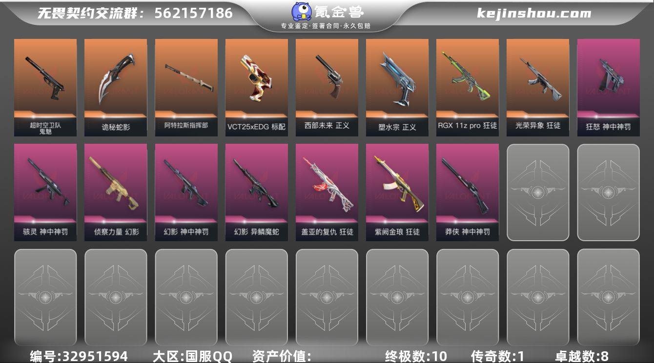 【946794】【套装】:神中神罚套装 【英雄】:幻棱,炼狱,暮蝶,钛狐,壹决,铁臂,捷风,不死鸟,贤者,猎枭,零,芮娜,奇乐,尚勃勒,霓虹,斯凯,星礈,K/O,盖可,黑梦 【近战武器】:近战武器-影钩,近战武器-神之刃,近战武器-镭切,近战武器-诡秘蛇影 军刀,近战武器-阿特拉斯指挥部 甩棍 【狂徒】:狂徒-RGX 11z Pro,狂徒-光荣异象,狂徒-盖亚的复仇,狂徒-紫阙金琅,狂徒-诡秘蛇影 【幻影】:幻影-侦察力量,幻影-异鳞魔蛇,幻影-神中神罚,幻影-末日之翼 【戍卫】:戍卫-折光棱晶 【飞将】:飞将-末日之翼 【莽侠】:莽侠-神中神罚,莽侠-诡秘蛇影 【奥丁】:奥丁-末日之翼 【判官】:判官-诡秘蛇影 【骇灵】:骇灵-神中神罚 【蜂刺】:蜂刺-折光棱晶 【标配】:标配-折光棱晶 【VCT手枪】:标配-VCT25 x EDG 【正义】:正义-塑水宗,正义-西部未来 【鬼魅】:鬼魅-超时空卫队,鬼魅-诡秘蛇影,鬼魅-星云暗涌 【狂怒】:狂怒-神中神罚 【短炮】:短炮-末日之翼 【卡面】:精灵大战 卡面,南瓜盛典 卡面,无畏契约:暮蝶 卡面,正义的化身 卡面,时间到 卡面,最高舞台 卡面,声感陷阱设计图 卡面,Clutch 卡面,梦幻奶茶 卡面,源能反应 卡面,零点嗅探设计图 卡...