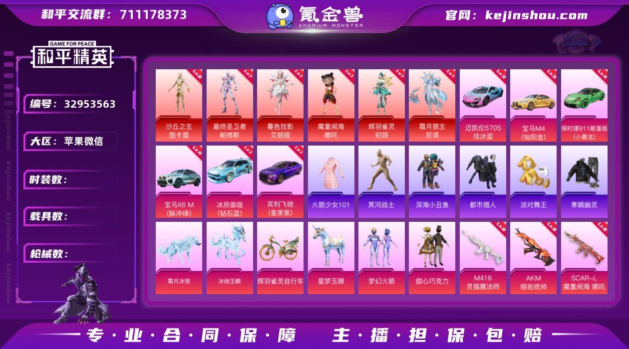 编号72033 果V售后,6级图卡盟,艾丽娅,初翊,尼诺,哪咤,帕修斯,新老101,寒蝎,金鞋子,都市,木乃伊,金鞋子,巧克力,猪妹,白勺,狂魅哈莉,狂魔小丑,番茄,5级M4,5级迈凯伦,4级911,4级X6,飞驰,冰辰御座,冰狼, 星梦玉骢,灵猫魔法师,熔岩,6级星梦奇缘,魔童闹海,仙履奇缘,辉羽雀灵,无根阁,超新星,沙丘之主,霜月狼主,宁雨蝶,最终圣卫者,31特4满13计数9淘汰,16载具1僚机,28粉6红,送碎片等