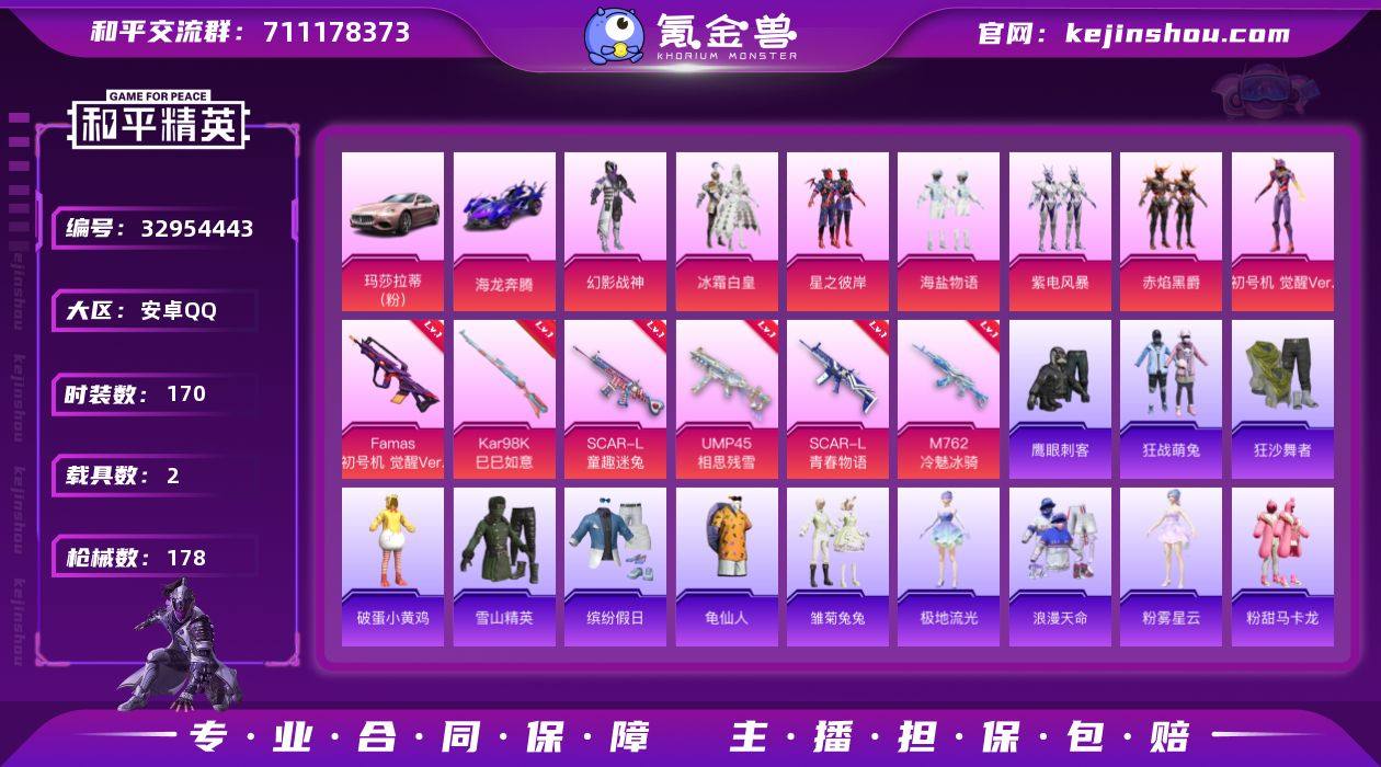 DYH18048【2载具-7粉装-6特效枪】可二次-安卓手Q-2载具-7粉装-6特效枪-170套装-178枪皮-8王牌印记-坚韧铂金Ⅴ-64686热力值【2载具】海龙奔腾,玛莎拉蒂Ghibli(粉)【7粉装】冰霜白皇,紫电风暴,幻影战神,角色-初号机 觉醒Ver.,赤焰黑爵,星之彼岸,海盐物语【6特效枪】SCAR-L-青春物语[3级],Kar98K-巳巳如意[3级],Famas-初号机 觉醒Ver.[5级],UMP45-相思残雪[4级],SCAR-L-童趣迷兔[5级],M762-冷魅冰骑[6级]【6稀有】浪漫天命,TJB战队服,狂沙舞者,AKM-缤纷海域,M762-奇异狩猎者,AKM-百万伏特【6飞行器】天之羽翼飞行器,顶峰精英尾迹,BEARBRICK飞行器,破刃行动尾迹,粉色滑翔尾迹,王牌四分卫飞行器【3头盔】童趣迷兔头盔,幻影战神头盔,深海小丑鱼头盔【3背包】深海小丑鱼背包,神秘黑猫背包,幻影战神背包【329其它衣服和枪皮】SS11特训,SS23特训,SS35特训,冷焰舞者,深蓝色名流,香桃花海,瑞龙福将,SS20特训,特种颜团子,冰爽海盐,顶瓜瓜,大橘大利,雪鹰学院,SS2特训,冰河战士,蓝色运动,沙漠兵团,潮流游乐家,骑行爱好者,竞技勇士朋克,SS19特训,白色伏地魔,酷潮明星,雏菊兔兔,金鼠迎春,鹤鸣,懵萌河马,都市漫游者,SS17特训,霓虹极客,漫步者,妙红点点,龙腾端午,街头潮人,角色-8号机,红色运动,福...