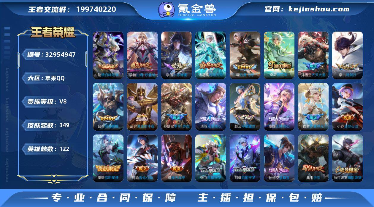 V8 1典藏 19传说 349皮肤 122英雄 【1水晶】铠-银白咏叹调【19传说】项羽-无限倾心,虞姬-无限倾心,孙悟空-齐天大圣,李信-山海·炽霜斩,李白-诗剑行,后羿-黄金射手座,铠-绛天战甲,李信-一念神魔,孙悟空-零号·赤焰,小乔-音你心动,虞姬-启明星使,赵云-淬星耀世,周瑜-音你心动,诸葛亮-时雨天司,吕布-怒海麟威,伽罗-炽翼辉光,张飞-百相守梦,曜-云鹰飞将,桑启-鸣野蒿【91史诗】墨子-降魔,元歌-无心,上官婉儿-神器·万象笔,鬼谷子-五谷丰年,赵云-未来纪元,高渐离-天秀·音浪,阿轲-暗夜猫娘,阿轲-节奏热浪,阿轲-迷踪丽影,安琪拉-心灵骇客,白起-星夜王子,百里守约-特工魅影,百里玄策-原初追逐者,曹操-幽灵船长,蔡文姬-繁星吟游,嫦娥-拒霜思,程咬金-功夫厨神,妲己-女仆咖啡,妲己-魅力维加斯,大乔-猫狗日记,大乔-白蛇,狄仁杰-魔术师,狄仁杰-鹰眼统帅,典韦-岱宗,貂蝉-圣诞恋歌,伽罗-天狼溯光者,宫本武藏-鬼剑武藏,关羽-冰锋战神,韩信-飞衡,后羿-辉光之辰,花木兰-水晶猎龙者,黄忠-烈魂,橘右京-修罗,铠-曙光守护者,兰陵王-暗隐猎兽者,老夫子-航海奇遇记,李白-千年之狐,李元芳-逐浪之夏,李元芳-银河之约,廉颇-地狱岩魂,刘邦-德古拉伯爵,刘禅-绅士熊喵,刘禅-天才门将,露娜-紫霞仙子,鲁班七号-电玩...