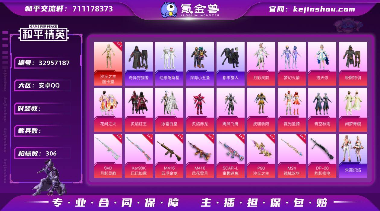 【3级图卡盟 都市 新101 极限 满级五爪 双马尾 小丑鱼 哥特 童趣头 粉熊包 满地铁天赋】c28747-【无二次】【因赛季更新游戏段付以上号为准!】 安卓Q-1红装4稀有13粉装8特效枪23热门195套装306枪皮 14印记 历史卓越王牌14星 【1红装】 沙丘之主-图卡盟 (3级) 【4稀有】 奇异狩猎者 AKM-缤纷海域 都市猎人 浪漫天命 【13粉装】 梦幻火箭 洛天依 月影灵韵 闲梦青缨 青空秋雨 极限特训 花间之火 冰霜白皇 炙焰红王 霞光圣骑 虎啸骄阳 炙焰赤龙 飓风飞鹰 【8特效枪】 M416-五爪金龙 (7级) P90-沙丘之主 (3级) Kar98K-巳巳如意 (5级) DP-28-豹影疾电 (5级) SVD-月影灵韵 (1级) M24-镜域双华 (2级) SCAR-L-童趣迷兔 (5级) M416-风花雪月 (7级) 【23热门】 小丑鱼 龟仙人 动感兔斯基 呆萌铁蟹 鹰眼刺客 迅捷狂鲨 深海小丑鱼 暗影哥特 醒狮腾龙 团圆交子 瑞龙福将 粉红小猪 漫步者 玄武圣者 破蛋小黄鸡 新侠客行 英勇保护者 弄潮海豚 AKM-奇异狩猎者 M762-奇异狩猎者 M762-瑞龙福将 M24-奇异狩猎者 S686-奇异狩猎者 【4飞行器】 龙翔九天飞行器 梦幻火箭飞行器 花傲天飞行器 星夜魔法师飞行翼 【5头盔】 童趣迷兔头盔 梦幻火箭头盔 甜心宝贝头盔 百万伏特头盔 深海小丑鱼头盔...
