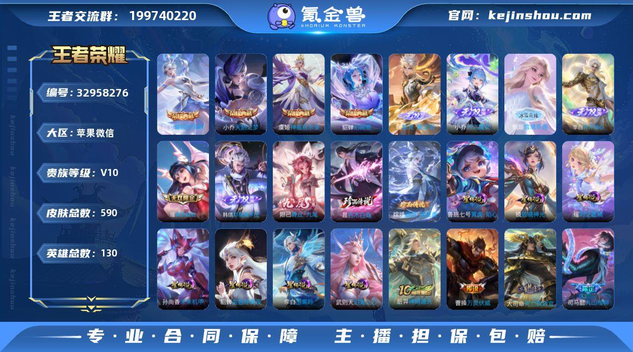 【c4270】漂亮女号v10质量号!紫瑶!7无双!小乔满皮!西施满皮!发育路41段!中路38段!虞姬小国标!2省标!7星传说!42按键!蛇年天幕!苹果WX-V10【特价出售,永久包赔】-永恒钻石I段位-129英雄-590皮肤-4典藏皮肤-1典藏英雄-7无双-2珍品传说-93传说-210史诗 【英雄全皮】:小乔全皮,刘禅全皮,高渐离全皮,钟无艳全皮,司马懿全皮,姜子牙全皮,孙权全皮,娜可露露全皮,橘右京全皮,刘备全皮,杨玉环全皮,苍全皮,鬼谷子全皮,云中君全皮,猪八戒全皮,亚连全皮,嫦娥全皮,西施全皮,澜全皮,镜全皮,阿古朵全皮,桑启全皮,夏洛特全皮,司空震全皮,金蝉全皮,暃全皮,赵怀真全皮,莱西奥全皮,戈娅全皮,空空儿全皮,海诺全皮 【荣耀典藏】:武则天英雄,小乔天鹅之梦,貂蝉幻阙歌,虞姬神鉴启示录,伽罗最初的交响 【无双皮肤】:曜器灵螭龙剑,甄姬雪境奇遇,韩信群星魔术团,小乔时之魔女,李白碎月剑心,瑶真我赫兹,妲己青丘九尾 【珍品传说】:暃朽木白哉,嫦娥器灵落星盏 【传说皮肤】:后羿神树通天,曹操万灵伏威,大司命死亡执政官,司马懿九山相柳,西施续相思,杨玉环星之鸣奏,后羿千劫归真,司空震愿照山河定,女娲愿照千秋盛,妲己愿照众生和,澜愿...