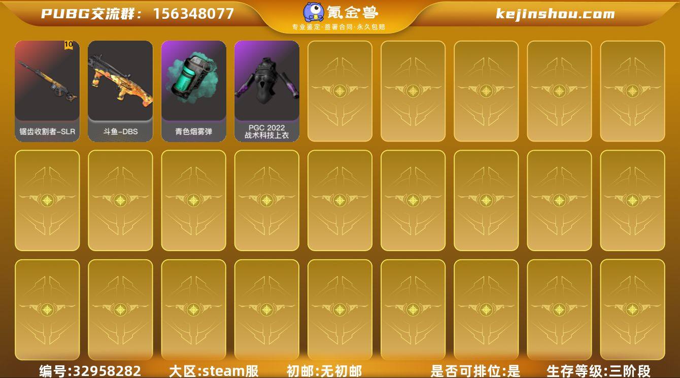 JDPX12753 生存500级可排位/10级锯齿收割者-SLR/青色烟雾弹/发光手臂/星魂白运动/ 0BCVAX号 无排名, 生存等级1155, 名誉等级1, 金标数量1, 图纸2, 聚合物4176, 枪皮数量61, [成长型] 锯齿收割者 - SLR[10级]