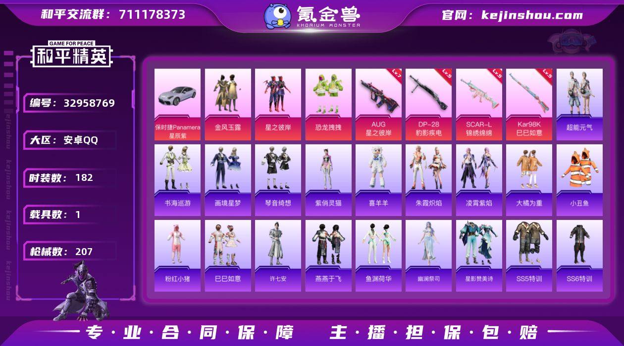 安卓手Q H-KWF381【3粉装9特效枪1载具1粉色飞行器 小丑鱼/粉红小猪/金风玉露/星之彼岸/恐龙拽拽/马上来财/许七安/幽澜祭司/星影赞美诗/喜羊羊/紫俏灵猫/月烬之祷/孙斩天/骁骑迪迦/银尘/大橘为重/冰川特警】64632热力值-12王牌印记-182套装-207枪皮 【热门品类】:套装-小丑鱼,套装-粉红小猪 【粉色套装】:粉装-金风玉露,粉装-星之彼岸,粉装-恐龙拽拽 【粉色枪皮等级】:SCAR-L-锦绣绵绵(五级),AUG-星之彼岸(七级),ACE32-萌骑漫游(五级),UMP45-萌骑冒险