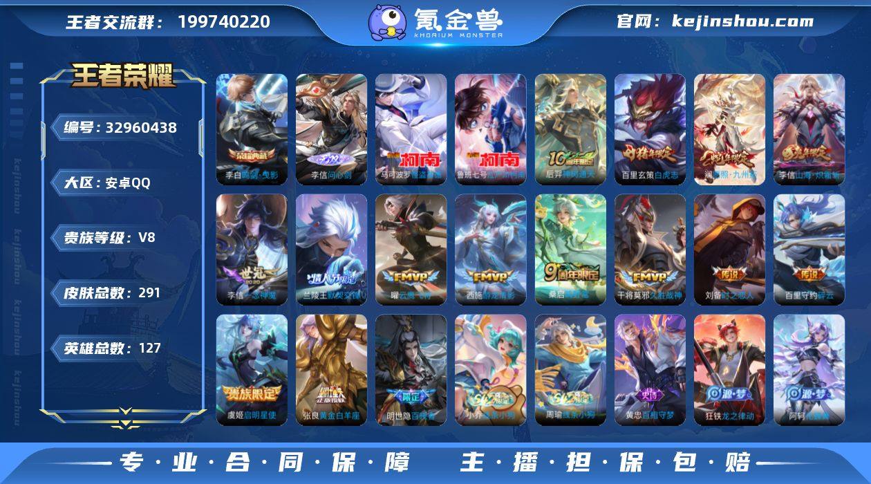 CHC30421 14按键 安卓Q-V8-最强王者段位-127英雄-291皮肤-1典藏皮肤-1无双-2珍品传说-14传说-72史诗 【英雄全皮】:李信全皮 【荣耀典藏】:李白鸣剑曳影 【无双皮肤】:李信问心剑 【珍品传说】:鲁班七号江户川柯南,马可波罗怪盗基德 【传说皮肤】:后羿神树通天,澜愿照九州拓,桑启鸣野蒿,李信山海炽霜斩,百里守约碎云,西施游龙清影,兰陵王默契交锋,虞姬启明星使,曜云鹰飞将,李信一念神魔,刘备时之恋人,张良黄金白羊座,干将莫邪久胜战神,百里玄策白虎志 【限定皮肤】:姜子牙天穹之誓,杨戬破阵退雄兵,李白谪仙醉月,狄仁杰阴阳师,赵云皇家上将,孙尚香蔷薇恋人,庄周高山流水,高渐离玩趣恶龙,甄姬游园惊梦,狄仁杰魔术师,狄仁杰万华元夜,达摩沙漠行僧,项羽海滩派对,老夫子醍醐杖,程咬金演武夺筹,韩信飞衡,兰陵王默契交锋,兰陵王金庭之子,牛魔御旌,李元芳云中旅人,虞姬启明星使,钟馗驱傩正仪,蔡文姬繁星吟游,鬼谷子原初探秘者,鬼谷子五谷丰年,苏烈千军破阵,百里玄策白虎志,百里玄策原初追逐者,弈星混沌棋,梦奇顽趣,沈梦溪大漠名商,明世隐疑决卦,裴擒虎李小龙,裴擒虎擒涛扼浪,米莱狄御霄,云中君纤云弄巧,李信山海炽霜斩,盾山...
