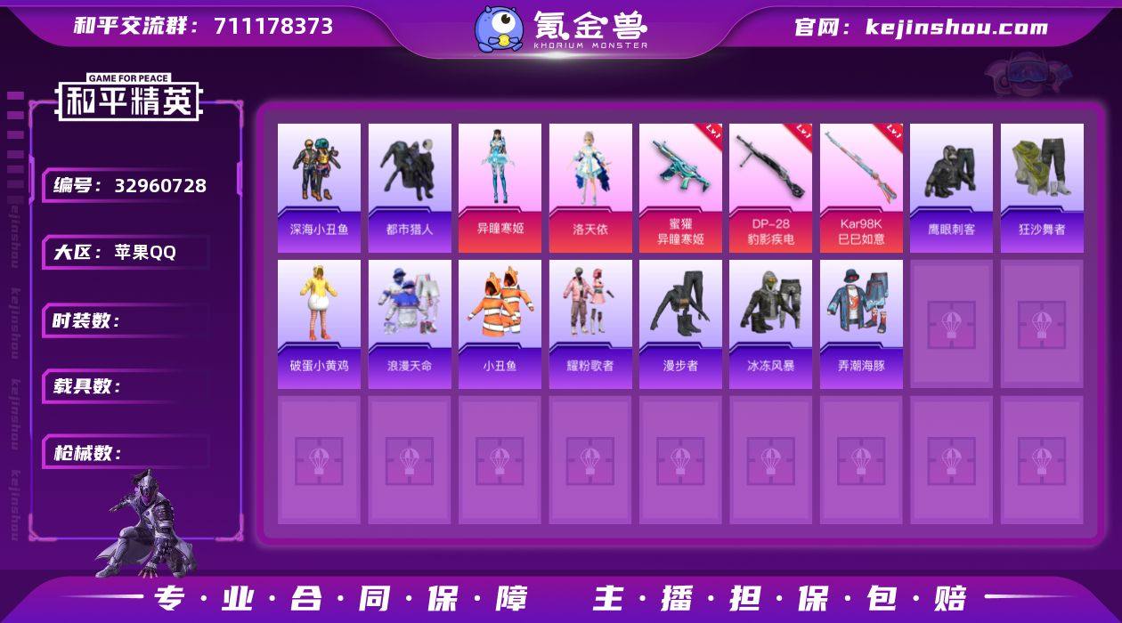 DSH2353【身法号2粉6特 都市猎人 浪漫天命 深海小丑鱼 狂沙舞者 洛天依】苹果手Q-2粉装-6特效枪-58套装-89枪皮-3王牌印记-卓越王牌7星-25093热力值【2粉装】角色-洛天依,角色-异瞳寒姬【6特效枪】Kar98K-巳巳如意[4级],M249-绝对恒星[4级],DP-28-豹影疾电[5级],Mk14-福马献瑞[5级],蜜獾-异瞳寒姬[6级],ACE32-萌骑漫游[4级]【5稀有】小丑鱼,浪漫天命,深海小丑鱼,狂沙舞者,都市猎人【8飞行器】登顶巅峰飞行器,鸡智如我飞行器,异域银装飞行器,炫彩糖果飞行器,绝对恒星飞行器,狂鲨锋刃飞行器,云朵驼驼飞行器,马上有福飞行器【1背包】甜心宝贝背包【134其它衣服和枪皮】魅力单车,福马献瑞,鹰眼刺客,大橘大利,炫彩糖果,角色-紫俏灵猫,SS35特训,冷焰舞者,秘语星愿,薄荷星砂,暖暖麦兜,萌鸡速递,完美偶像,雨过天青,荧光像素,街头潮人,破蛋小黄鸡,漫步者,青涩时光,绿洲幽影,SS36特训,弄潮海豚,SS34特训,街头风暴,书海巡游,青翼流星,狂鲨锋刃,粉黛兰香,长空猛禽,白糯汤圆,琴音绮想,黑色伏地魔,海岛探路者,冰冻风暴,荒原烈焰,雪国风尚,风迹短诗,红釉青花,错位像素,画境星梦,SS37特训,角色-超感刻度,阳光菠萝,马上有钱,角色-甜心蒙太奇,狙击之神,耀粉歌者,竞技名士,王牌教练,午间小调,蓝...